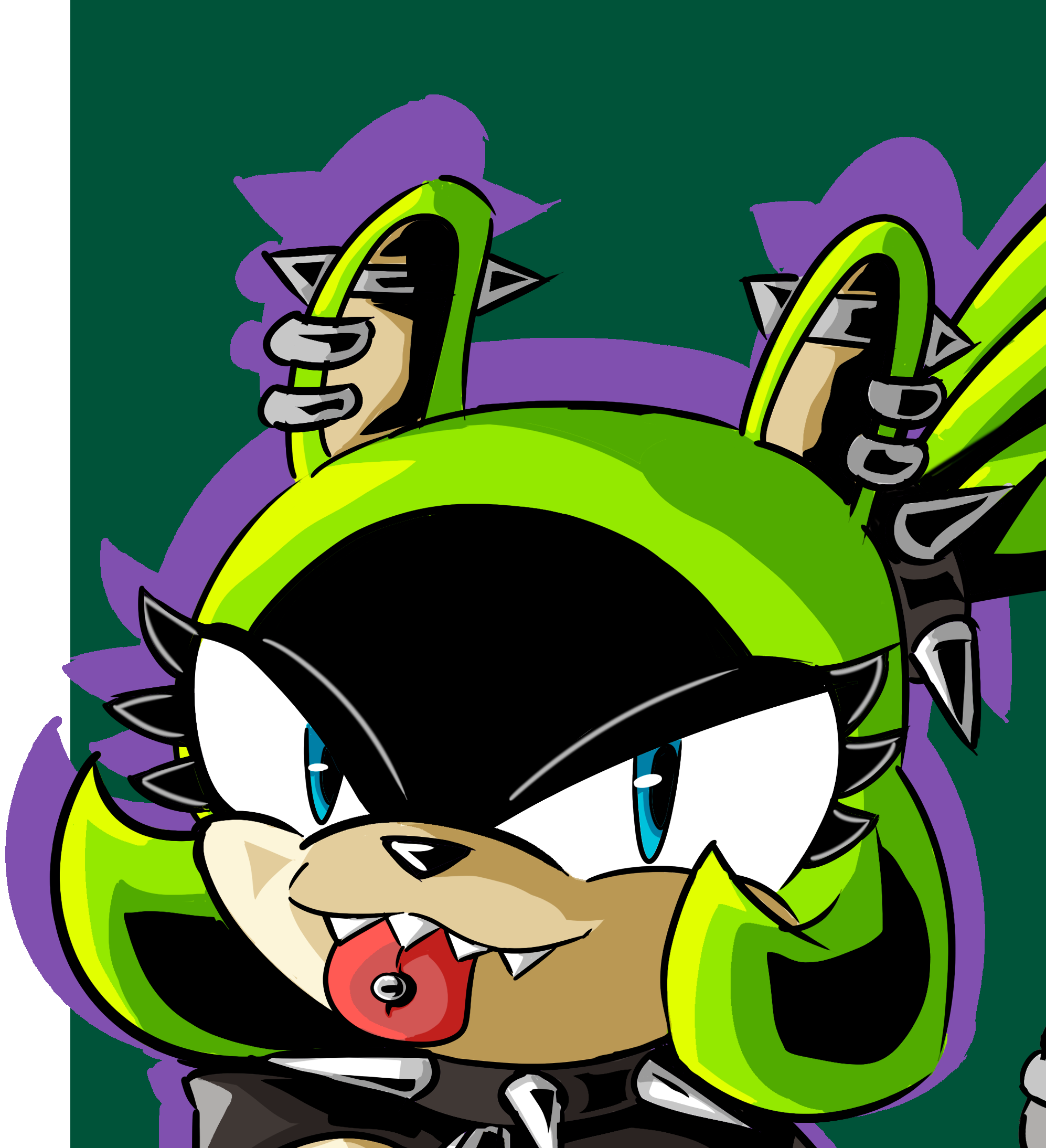 Requesting Meng in the punk rock outfit having sex with a human with her on top.