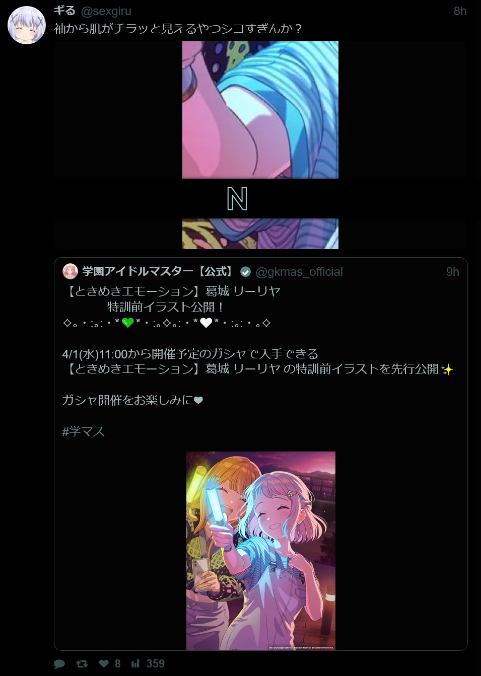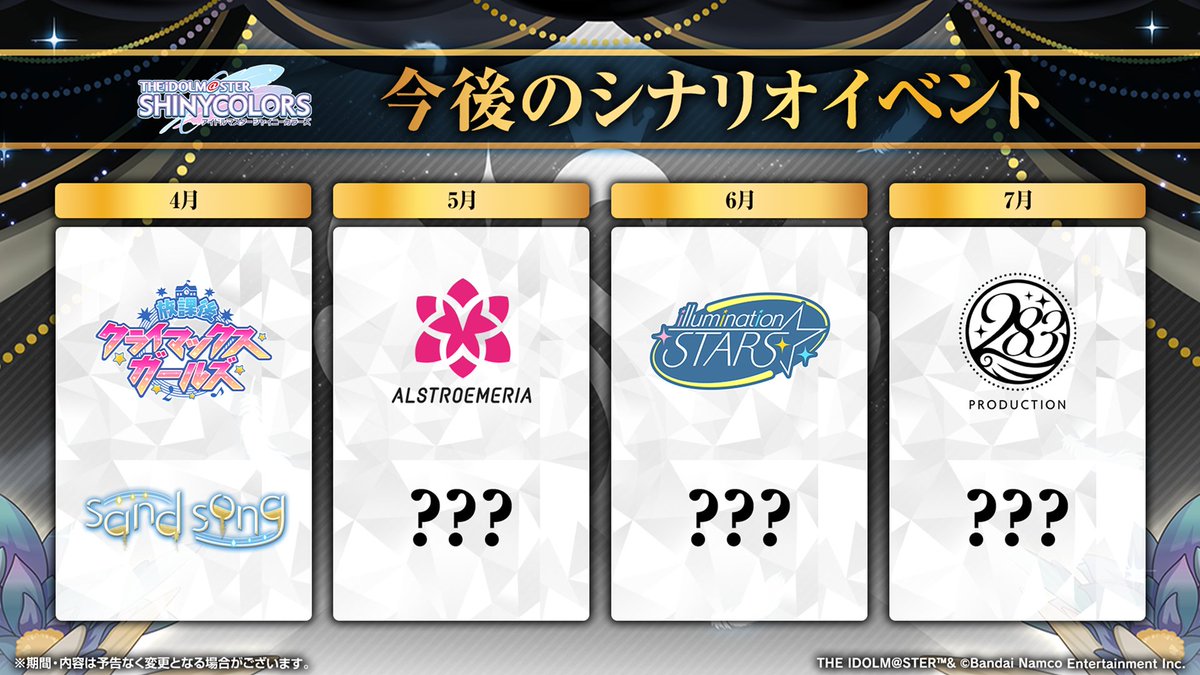 iM@S NEWS ARCHIVE- Archive of >>561795304: archive.is/OVluF>Shiny Colors- SC 8th Anniversary Start stream summary (Mar 29th): >>561877519- SC 8th LIVE "iと夢" key visual: >>561878709 >>561859816- SC 8th Anniversary outfit "Kodomotachi": >>561853914- SC Upcoming TwiColle Mamimi: >>561854484 >>561854738 >>561854760 - SC Upcoming TwiColle Meguru support: >>561854634- SC April Fools 2026 "BLEND MIX" Event on Apr 1st: >>561880972- SC Houkago Climax Girls "sand song" event on Apr 2nd: >>561854857- SC Upcoming Fantasy Gacha Madoka: >>561855198- SC Upcoming noctchill Memory Boost: >>561855709- SC Upcoming Fuyuko Whispering Voice: >>561880385- SC Upcoming Haruki's birthday 2026 support on Apr 5th: >>561880870- SC April Schedule 2026: >>561881074- SFP PJ: REFRAC7IONS Higanryuu OurSTREAM on Mar 30th, 8PM JST.- SFP PJ: REFRAC7IONS Higanryuu Event featuring "sanka" on Mar 31st: >>561880138 >>561856172 >>561856270 >>561856585 >>561856686 >>561856835- SFP PJ: REFRAC7IONS Higanryuu "benibana" 2DMV on Apr 20th.- SFP Casual outfits in MVs and Dress Order: >>561857000- SFP Costume item packs on Apr 1st: >>561882120 >>561857113- SFP Bunny Day 2025 outfits on sale on Apr 1st: >>561857187- SFP April Schedule 2026: >>561857513