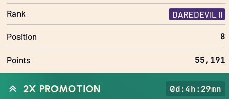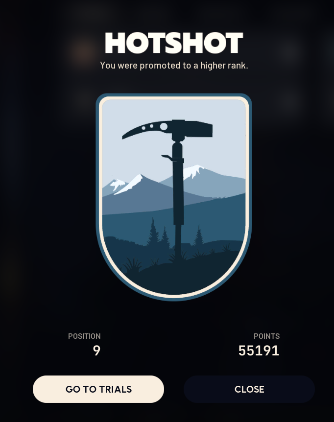>might accidentally get Hot ShotI hope its not too hard to keep rank, but if so it's whateverAlso half expecting to wake up tomorrow and only +1 promoted