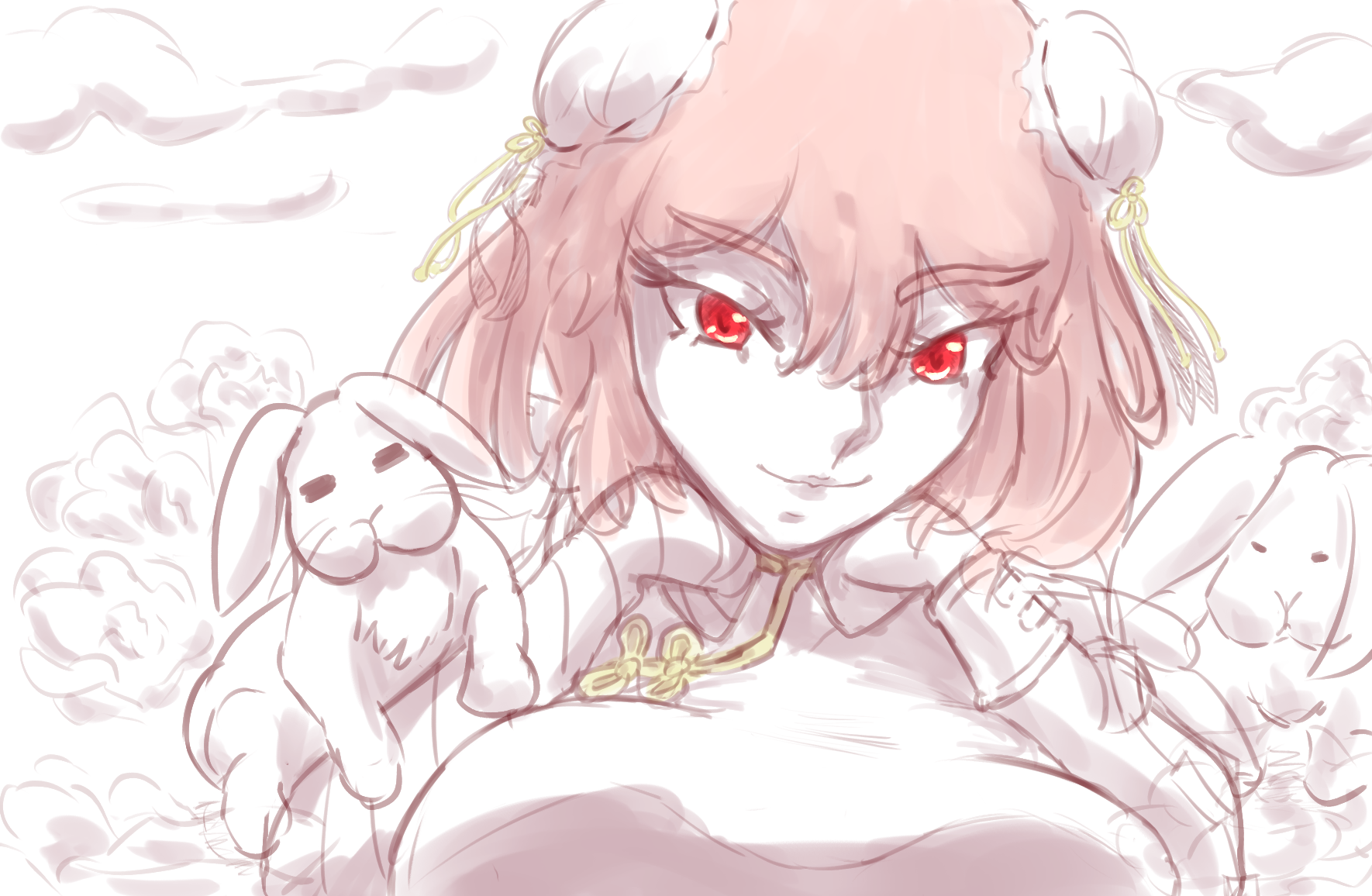 Work in progress for my Easter collage. I wanted to draw Kasen with a lot of bunnies and flowers, but first I have to figure out how to draw rabbits well.>>561914712Wife's favorite season is definitely summer or spring. I think she'd enjoy cuddling up during the winter though. I'm more accustomed to cold, I'd say.>>561915097Is that the bickety buck bumble?>>561967997Happy 2 years! I hope you enjoy many more.>>561996187Depends, the arm/oni would definitely be some close up melee kind of fighter but hermit Kasen would shake things up with her animal companions and her phantom arm to be more ranged.