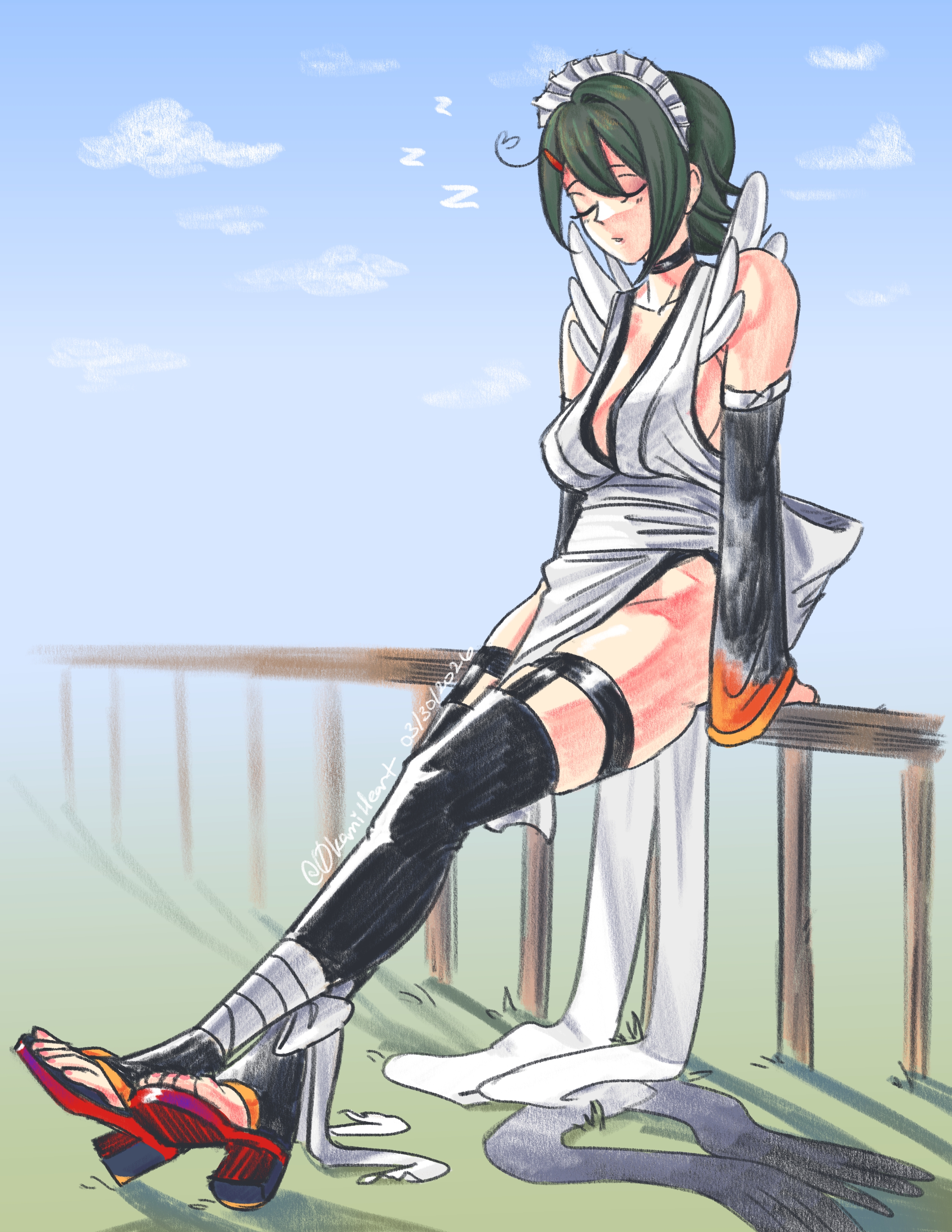 My wife Iroha taking a well deserved nap break.>>562002772Cute maid by the way.