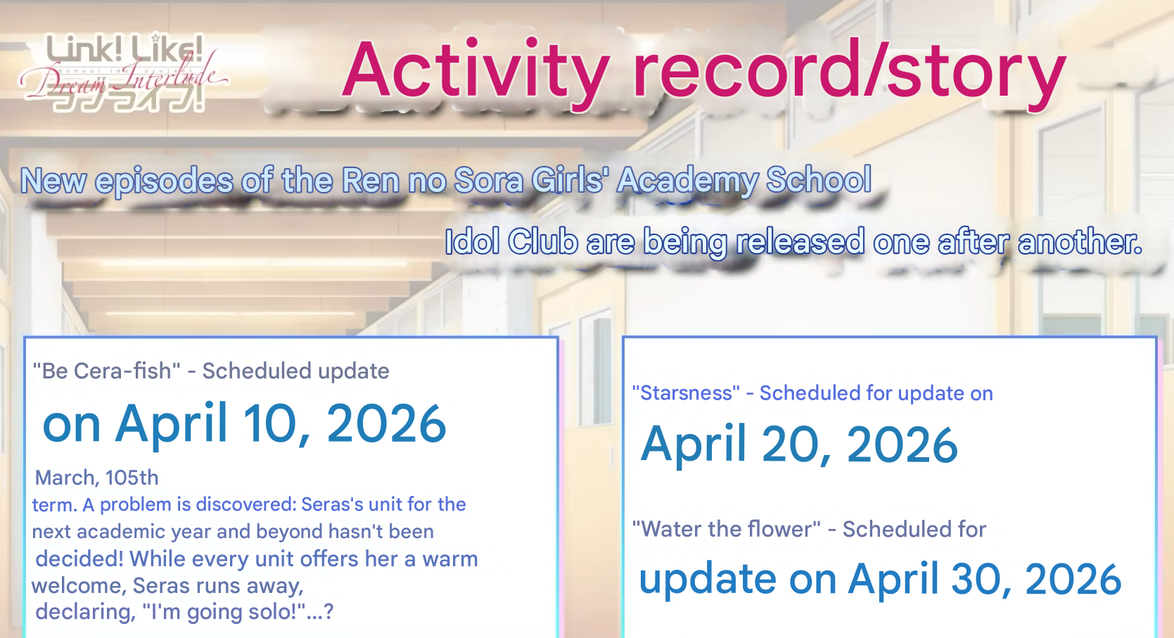 Zenkai no /llsifg/!: >>561671582LLLL: Autumn gachaHasunosora Bloom Garden Party releases in Spring 2026Loveca theme song by AiScReam announcedGuilty Kiss x Saint Snow unit GKSS single announcedAqours Finale Love Live! Eikyuu Stage Live CD announcedHasu 102 Audio Drama releases May 1Upcoming liveshttps://www.lovelive-anime.jp/schedule/>LLLL Localifyhttps://github.com/ChocoLZS/linkura-localify>LLLL gameplay guideshttps://docs.google.com/document/d/1UKk5AsMS3xVRvwit1frFLn8OZ0K_1IZf94j0t2H9DFE/edithttps://ham-san.net/notes/caa983c7-6e26-4de3-b775-a9aef2329a8a>LLLL databaseshttps://kachagain.com/linklike/ (103-104)https://wikiwiki.jp/llll_wiki/>dead game offline/private server guideshttps://carette.codeberg.page/ll-hax-docs/>Infodumphttps://docs.google.com/document/d/10Y2FJLnzYlkAr54-YuqdtBCZ8H5I_QELL1mUt3HLbE8/>Comprehensive resource on the Love Live! multimedia franchisehttps://wiki.schoolidol.net/