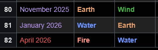 >>561955886After water is over, the only ones left are fire, light and dark. Light came before fire on the previous rotation, but there's no guarantee they won't swap the order this time.