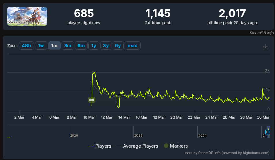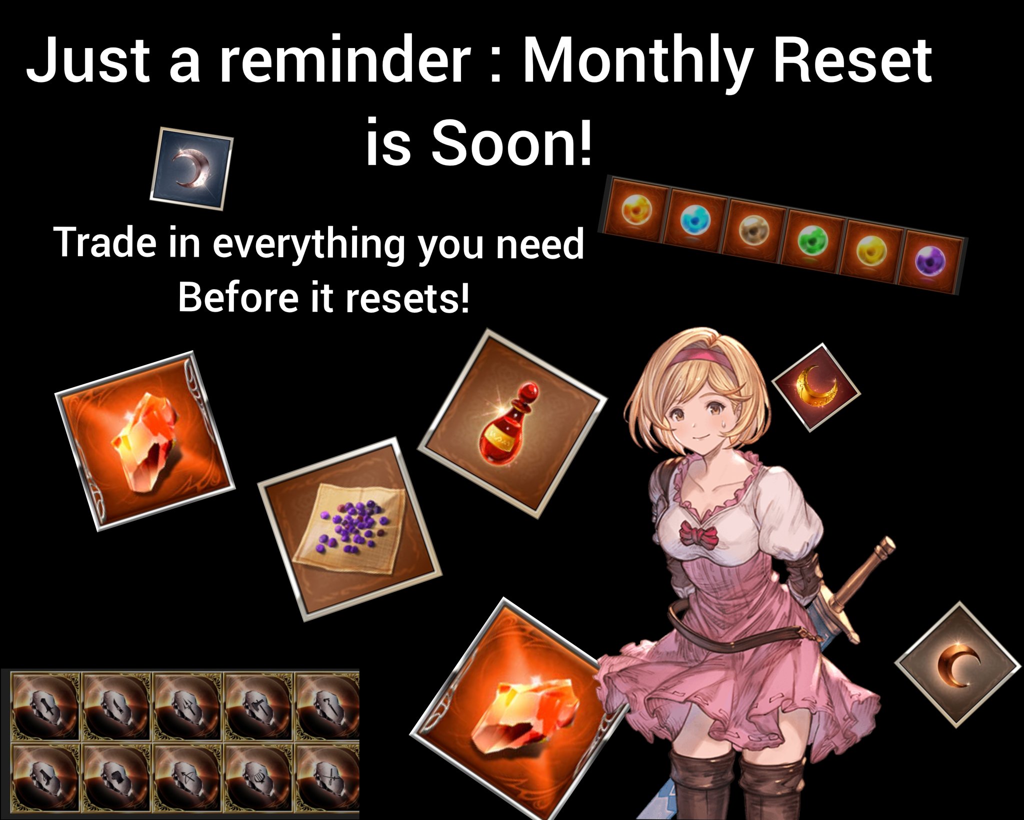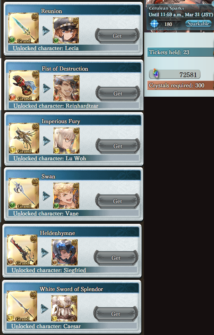 >Steam Client Releasedsteam.granbluefantasy.com>12th Anniversary 03/10 - 03/31Now Available:Vikala & Siete Anniversary SkinsLancer OriginZodiac SelectorRank Uncap (425)Character Homescreen update>Roadmap- https://gbf.wiki/User:Umikin/Timeline>March Schedule3/15 Exo Cocytus Crucible Rerun3/16 Grand Octavia, S.Apollo, Y.Eustace3/23 Tales of Arcarum: The Moon Rerun3/29 Golden Gift 2 released3/29 Momvasion! A Grandcypher Visit!3/31 S.Anthuria & Y.Alliah>April Schedule4/1 April Fool's4/6 Water Advantage GW4/14 ROTB Update4/17 ...and you. added to Side Stories (PICK THE QUARTZ)4/23 New MSQ Chapters & Fylkis4/23 Light/Dark Taboo raids>Future Schedule5/15 - FMA Collab6/? - Illustrious FLB & Transcendence7/? - Wizard Origin>Granblue Relink: Endless Ragnarok - 7/9Latest Info>https://www.youtube.com/watch?v=NaKBXO0HHa4Maggie/Bea/Eustace/Gallanza playable>How to StartGo to https://game.granbluefantasy.jp in any Chromium-based browser>READ THE FAQ before posting - It will answer most of your questions if you're new or learninghttps://gbf.wiki/FAQ>Helpful links - These links contain useful information like important guides and other stuffGranblue Fantasy Toolbox - https://mizagbf.github.io/GBF Advanced Search - https://gbfas.ioGBF Grid and Teambuilding - https://gbfguide.comMain Story Transcript - https://calico.nekoweb.org/gbf/story/Wiki Advanced Grids - https://gbf.wiki/Advanced_Grids/gbfg/ Mega Pastebin - https://pastebin.com/xHkyQTy8/gbfg/ Crew Directory - https://rentry.org/gbfgcrewsPrevious: >>561909423