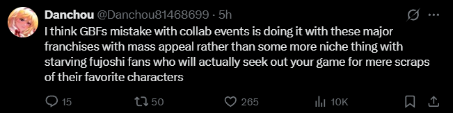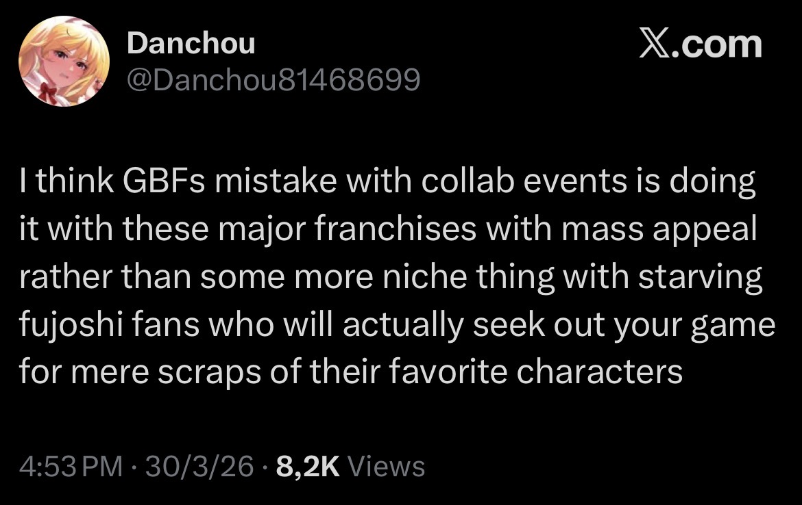 >>561956339>one gwIt did perfectly fine last GW, and that was before LO/HL ougi cap. If they don't want mistral in the event they can just give the boss a turn based dispel cancel.>>561956764That's true enough. Light needing both their Illustrious for the best times is a bigger incentive to spend for moons post-transcendance