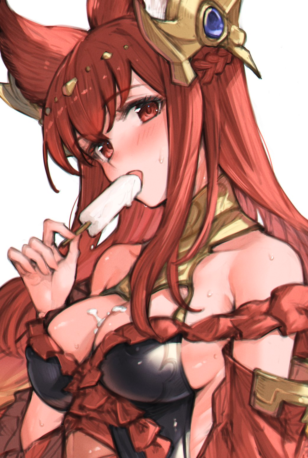 Swimsuit Ra this summer, except she's not wearing anything. Being the God of the sun, she just has convenient streaks of sun glare that obscure the sensitive bits.