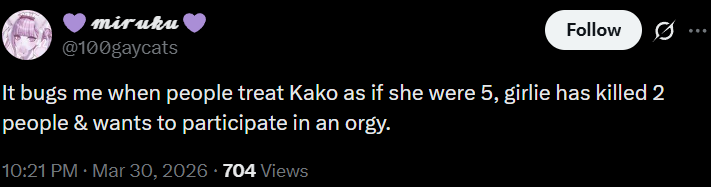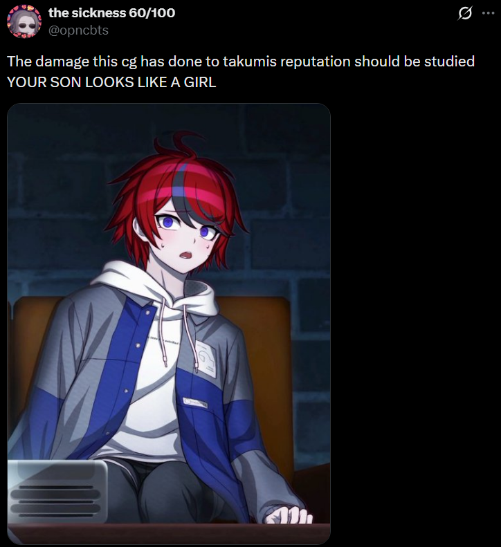 >>562166339I don’t see anybody outside of here (seriously) insulting Takumi by calling him a slut. Those who do get off on it