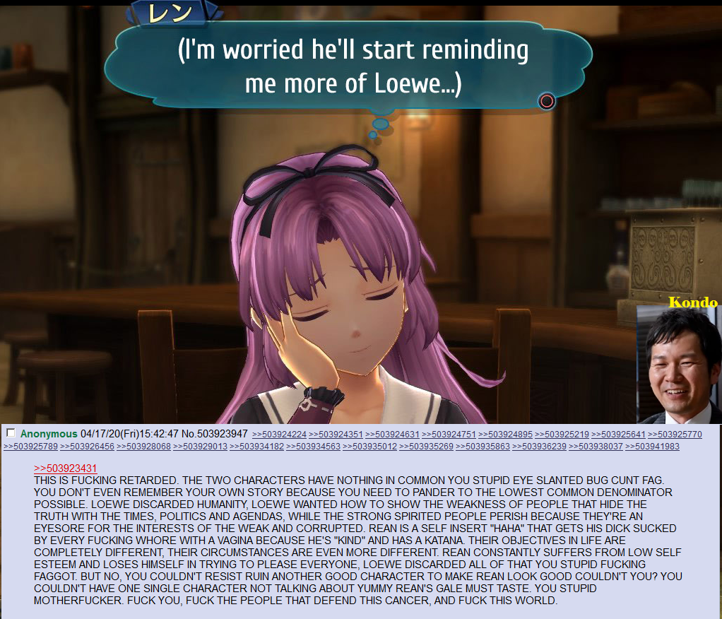 >>561988014No one gives a shit about civility at this point when you have people like the blogpostering spamming her shit despite no one enjoying it.If you don't like us talking about a Falcom content creator don't read the posts about it!