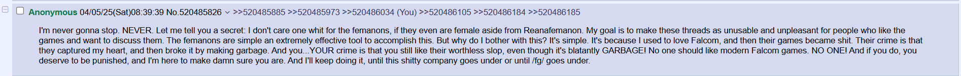 >>561993275>more insultsDamn you're REALLY upset over a Falcom content creator
