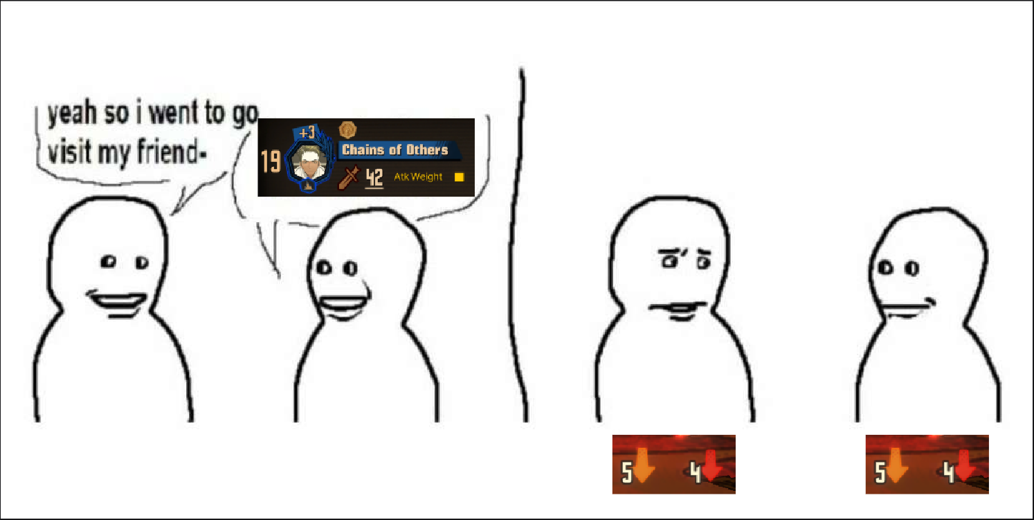 >>562012162>S2-2Attack an enemy that has tons of debuffs for a free hit>Defense-2Assist Defense gained from his Evade.