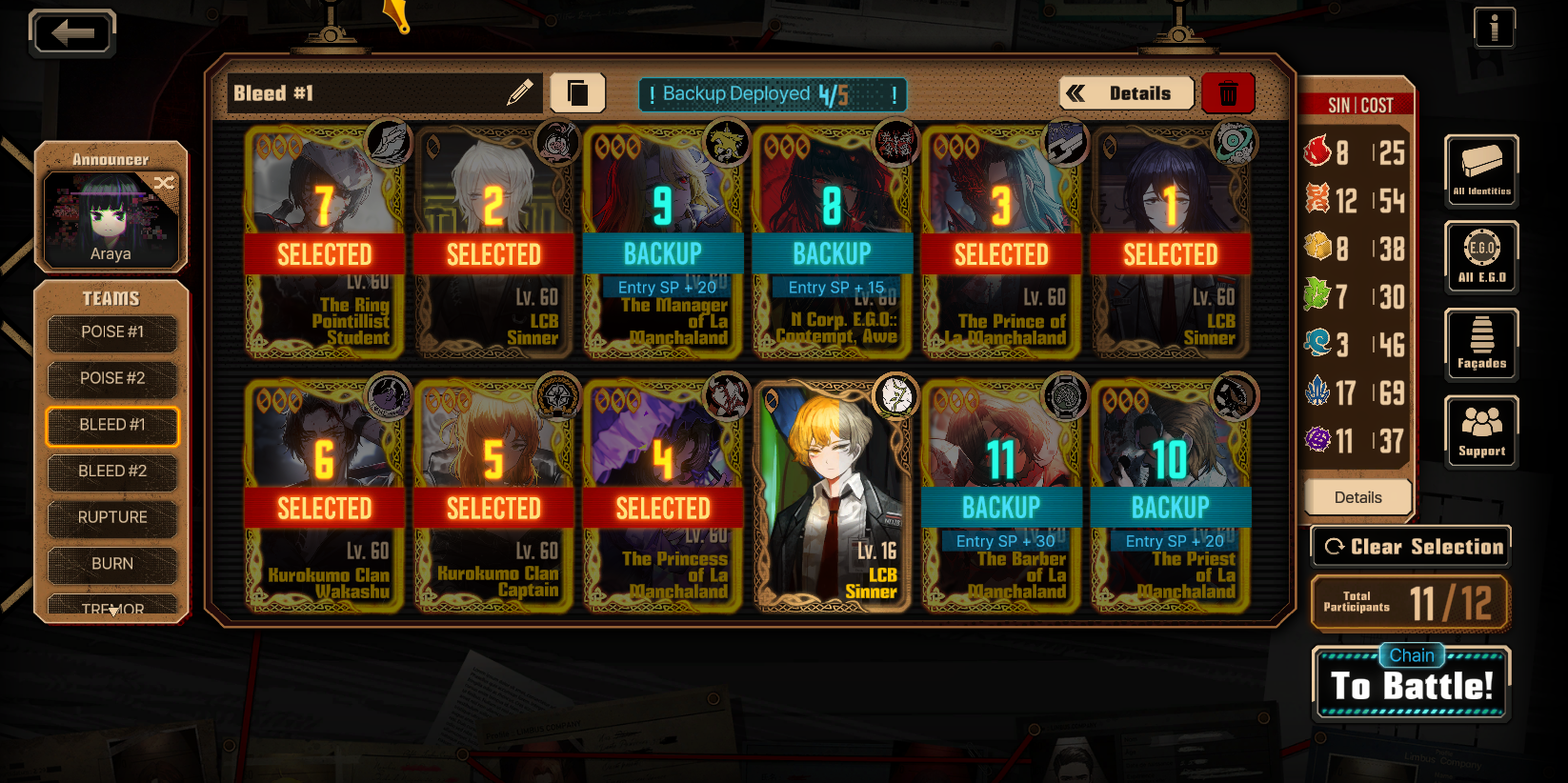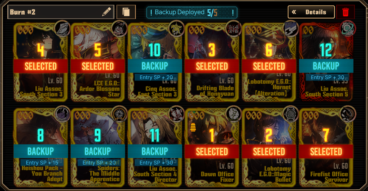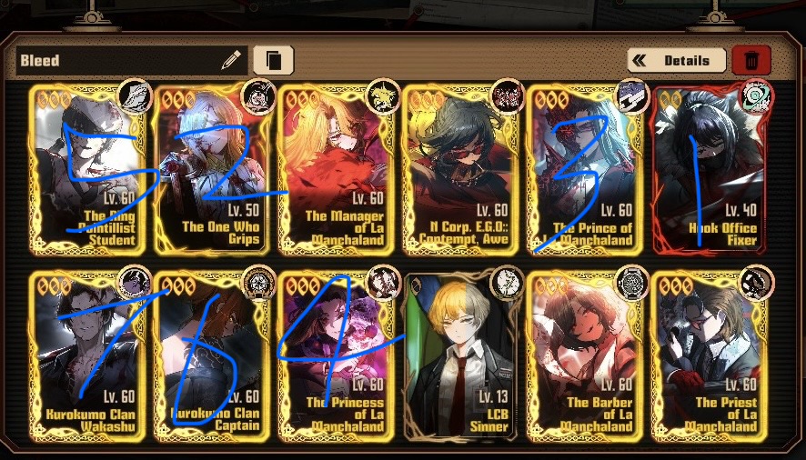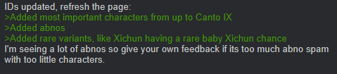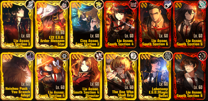 Previous thread: >>561959598Season 7 - Kumo no Ito2025.12.31 —Mirror Dungeon #7 - Mirror of Names and Spiders2026.02.19 —Refraction Railway Line 5 - Merry Go Round2025.02.20 —>Current Events2026.03.19 — 2026.04.16Chapter 7.5 - LCB Regular Check-up BokGak>Upcoming Extractions2026.04.02 — 2026.04.16[000] The House of Spiders: The Ring Nursefather Hong Lu[000] The House of Spiders: The Ring Apprentice Faust>Current Extractions2026.03.19 — 2026.04.16[000] LCE E.G.O:: AEED Gregor[HE] Ardor Blossom Star Faust2026.03.19 — 2026.04.02Target Extraction: [ Heathcliff ]>FAQs! This game is directly tied to the setting of Project Moon's previous games, Lobotomy Corporation and Library of Ruina, and is set after both. Expect spoilers for those games in this thread.! The tutorial is important.>Download linksAppStore: https://apps.apple.com/app/limbus-company/id6444112366Google Play: https://play.google.com/store/apps/details?id=com.ProjectMoon.LimbusCompanySteam: https://store.steampowered.com/app/1973530/Limbus_Company/>Other linksOfficial twitter: https://twitter.com/limbuscompany_bOfficial youtube: https://www.youtube.com/@ProjectMoonOfficialOfficial site: https://limbuscompany.global>Required readinghttps://mega.nz/folder/xosDkZ5Z#Wt4JpUt5Bb2XG77pxuuXpw>For all your EGO and Sinner info needshttps://limbus.kusoge.xyz/https://gll-fun.com/en/>Useful resources and a general guidehttps://rentry.org/lcg_resourceshttps://rentry.org/lcbguidehttps://rentry.org/LCB_optimal_grind_guidehttps://lcb-days-since-last-id.carrd.co/https://lcb-days-since-last-ego.carrd.co/>Countdownhttps://lcbcountdown.carrd.co/