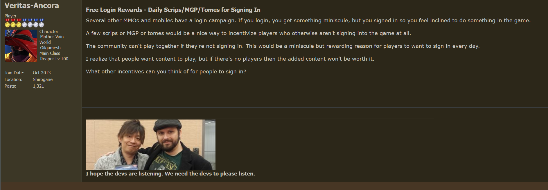 >>562002693This seems like broken logic. People wont run content just because they logged in. They will just login then immediately log off. Daily rewards don't get people playing the game unless the reward stipulates you must play the game in the first place like roulettes.