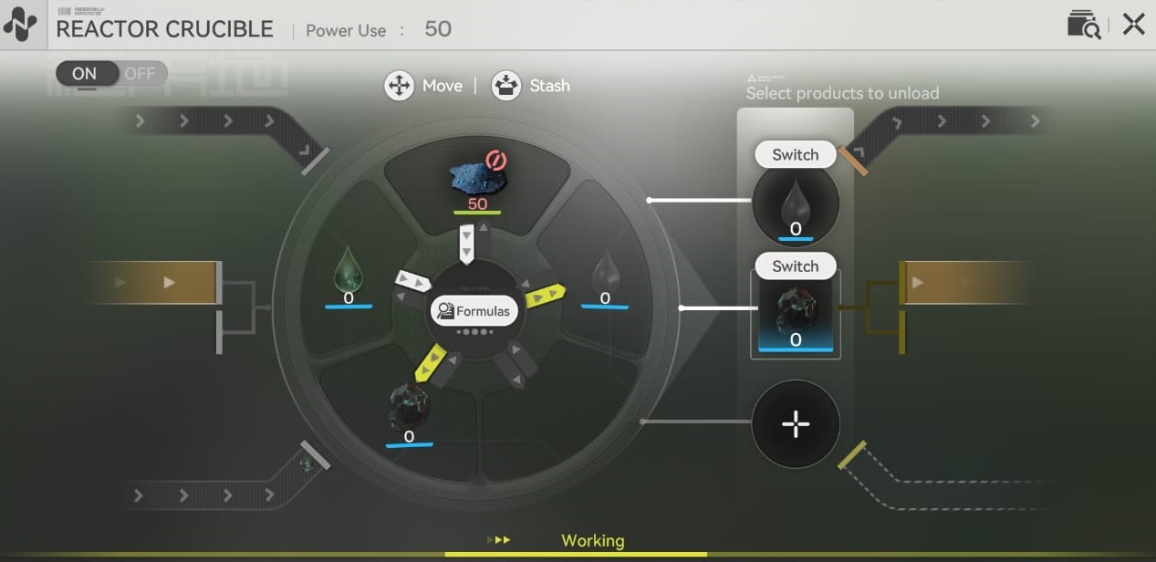 With other machines like the Grinding Units, I can just fill them with 3 or 4 sources of powders or whatever to account for the unbalance, and the production is 100% fluid without issues.