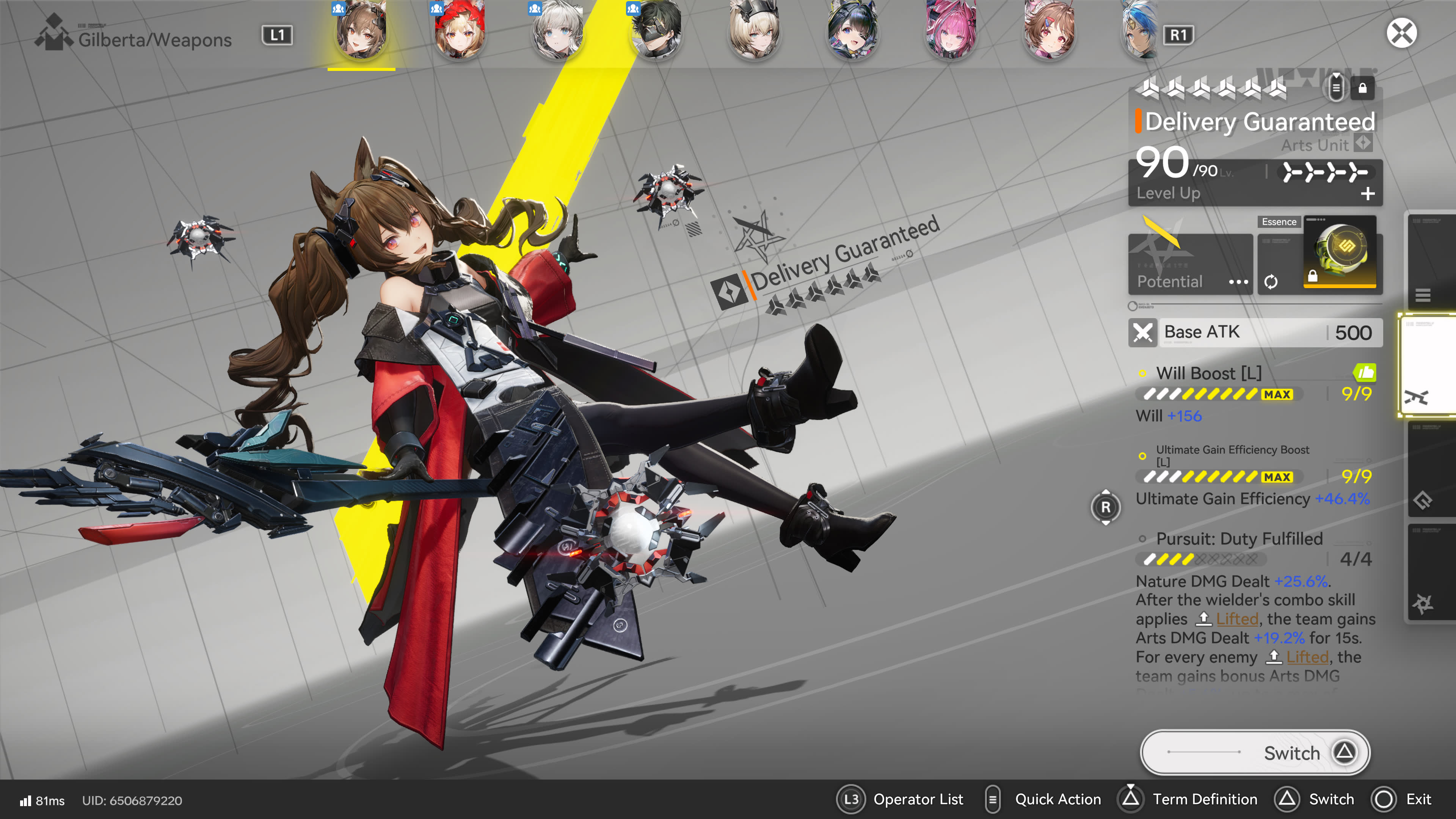 So basically, Rossi is a damage dealer... meant for hybrid teams (HEAT and PHYS). She deals big HEAT and PHYS damage, and then she facilities a second damage dealing teammate, a physical vuln consumer. Right now, that would be Endmin or Da Pan. Pog can also work.