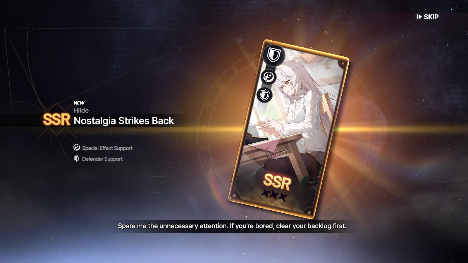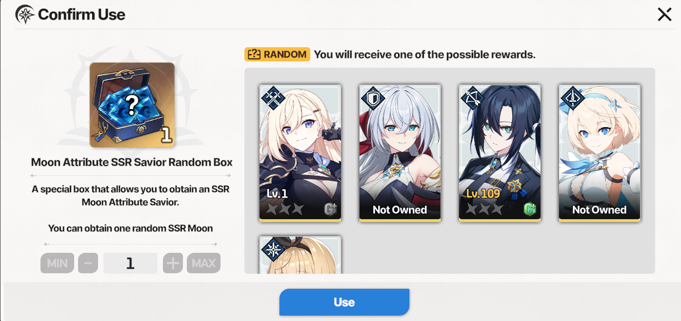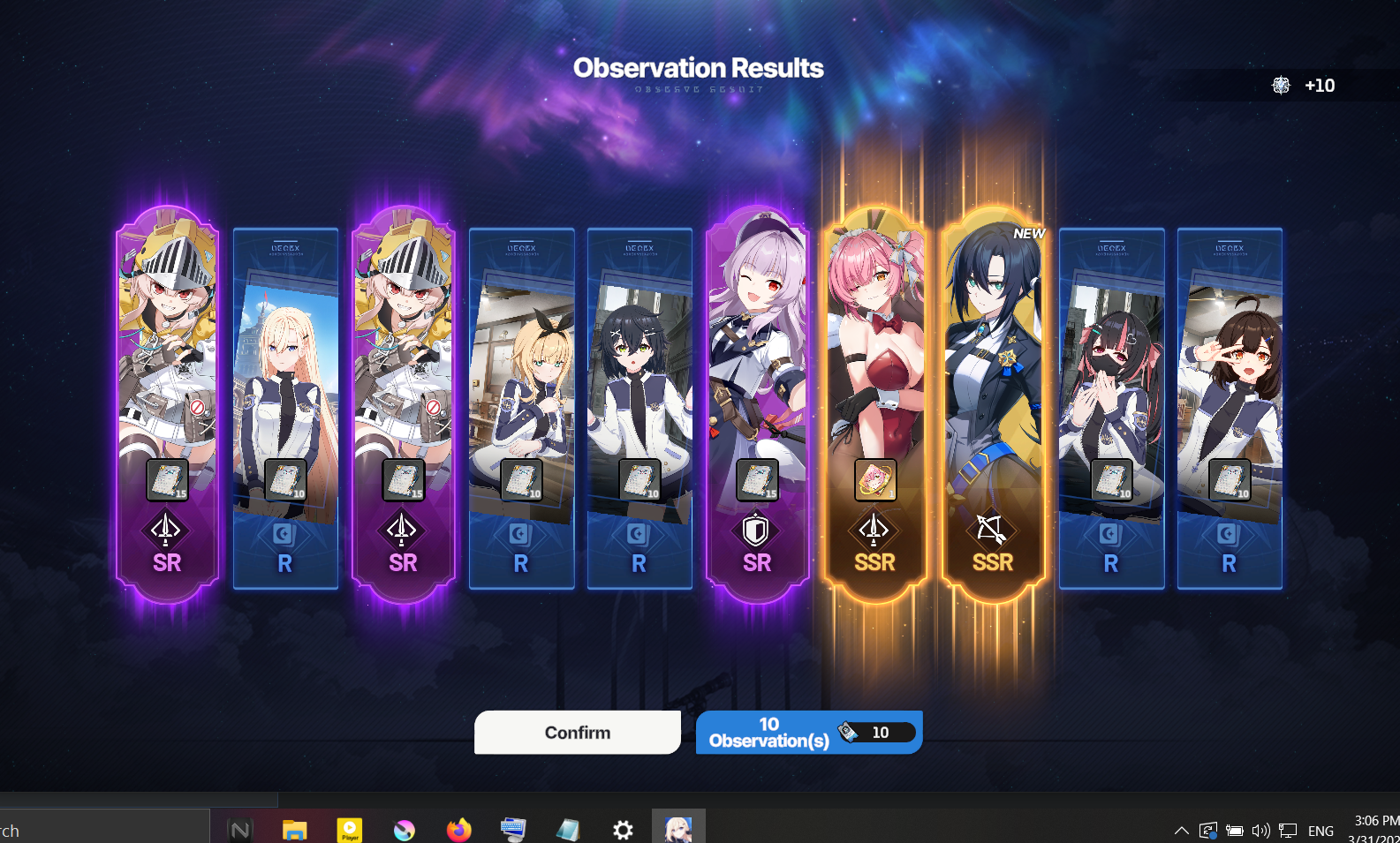 Rage rolled a quarter of my stash. Got a bunny charlotte dupe, omega dupe and Emily dupe. Could be worse I guess, at least two of them were useful. I really don't get how you guys are getting 2-4 useful SSR's all the time. Reading this general just makes me feel worse and worse about my progression.