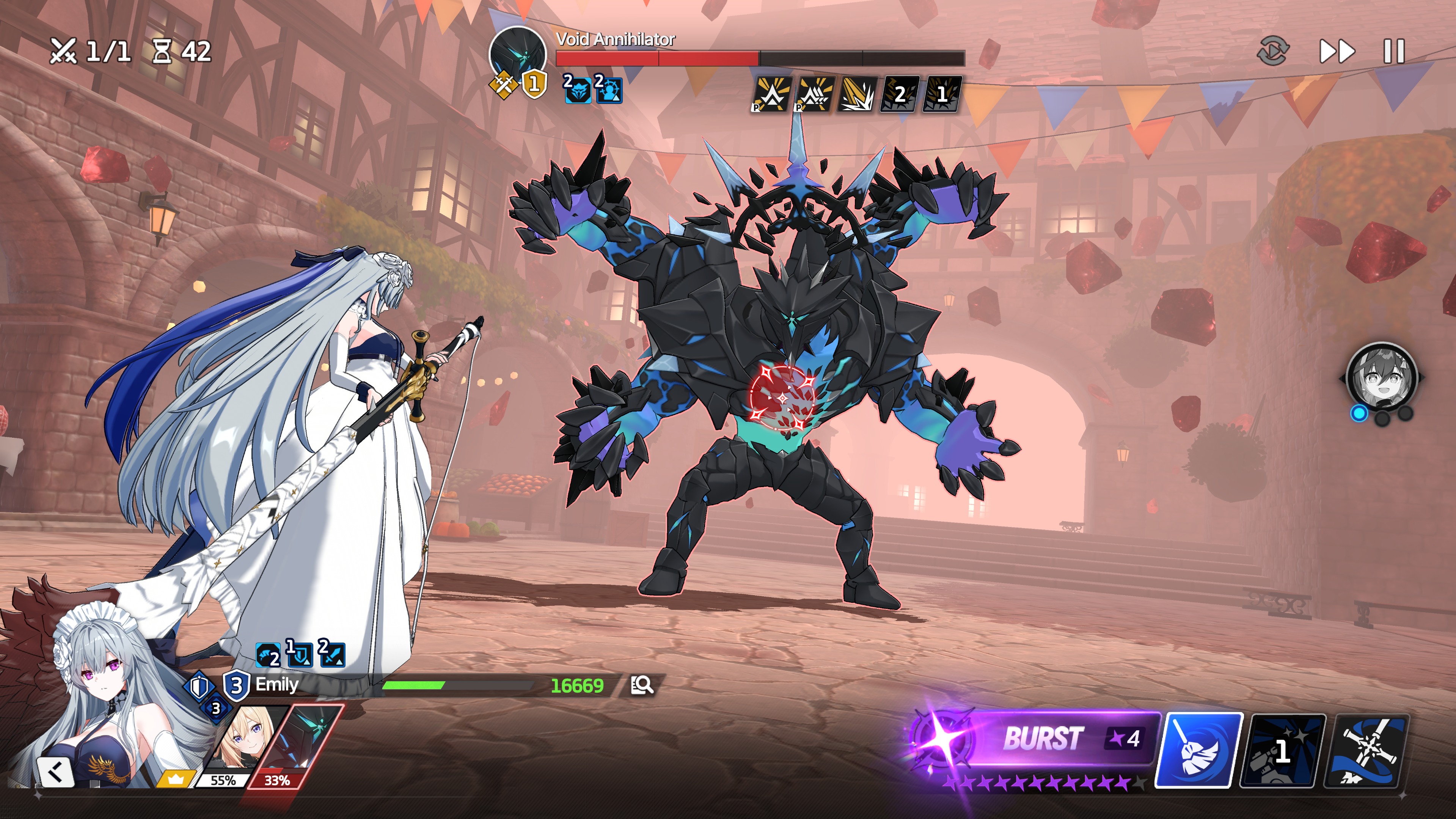 she also get stacks from other moon/blue allies attacks so your obviously kinda want to pair her with bunny claire and emily