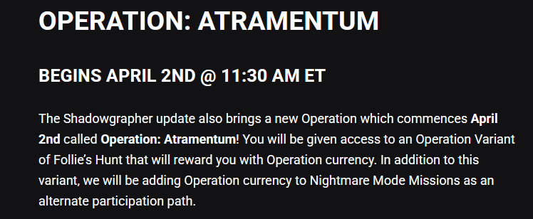 Mesa editionPrevious Thread: >>561955029Buy Plathttps://vocaroo.com/1jJoefGnh5lT >READ the Pastebin and Wiki BEFORE asking questionsOfficial Wiki: https://wiki.warframe.com/Useful Links: https://pastebin.com/8y5vLBY5 >/wfg/ Alliance4Funbros: contact ddaavveeFTW>/wfg/ ClansOblivion: contact Wxu. or Geogre512Warbros: contact KillsawCURRENT UPDATE: The Shadowgrapher: Hotfix 42.0.4https://www.warframe.com/en/patch-notes/pc/42-0-4https://www.warframe.com/en/the-shadowgrapherCURRENT PRIME ACCESS: Gyre Primehttps://www.warframe.com/prime-accessCURRENT EVENT: 13th Anniversary and Operation: Atramentum(April 2nd)https://www.warframe.com/en/news/13-year-anniversary-is-live