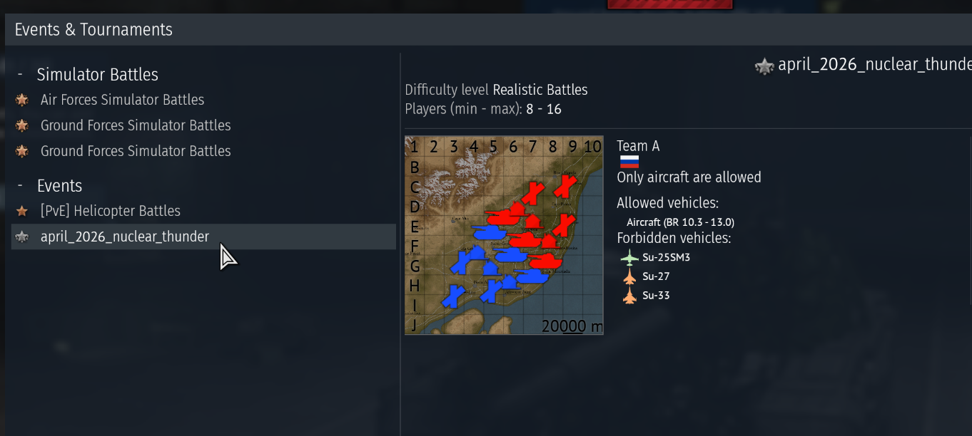 Forbidden EditionPrevious thread: >>561787806>Official site:warthunder.com/>Fan created content:live.warthunder.com/>Wiki with info on tech trees, weapon systems and game mechanics:wiki.warthunder.com/Main_Page>Old, better wiki:old-wiki.warthunder.com/Main_Page>Old forums archive:pastebin.com/EyMhsLAJ>Guides to Air and Ground battles + MEC:steamcommunity.com/sharedfiles/filedetails/?id=742852313docs.google.com/spreadsheets/d/1hgHbWlSjefFhCqOUeGpoKQntdQDPG32X7XQo9EqDF00old-forum.warthunder.com/index.php?/topic/438251-strategic-tips-for-ground-battle-maps-36-maps-90-videos-as-of-28august2020>Guides on missiles, radars, radar warning receivers:www.youtube.com/watch?v=Weghk_2DpfAwww.youtube.com/watch?v=_tQ6JzPWEFUyoutu.be/DOGazUgUdsQyoutu.be/wAtTS8xSYEc>Guides on how to evade missiles and survive top tier:www.youtube.com/watch?v=AsmGiyODPuMwww.youtube.com/watch?v=vUJJ94NwH_gwww.youtube.com/watch?v=8CAN_Mo2d74www.youtube.com/watch?v=NbKcAdLoWDkwww.youtube.com/watch?v=NYfNbDZw5J8>Guided weapons statistics:docs.google.com/spreadsheets/d/1SsOpw9LAKOs0V5FBnv1VqAlu3OssmX7DJaaVAUREw78>What tanks have thermals and their generations:thunderview.net/thermals/>Someone sending you runes?:translate.yandex.com/ocr>Player, game mode, and vehicle stats:https://statshark.net/Reminder: bombThread theme: https://www.youtube.com/watch?v=ev2U78zwgDI