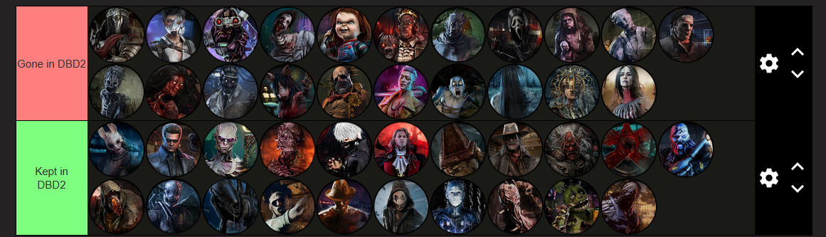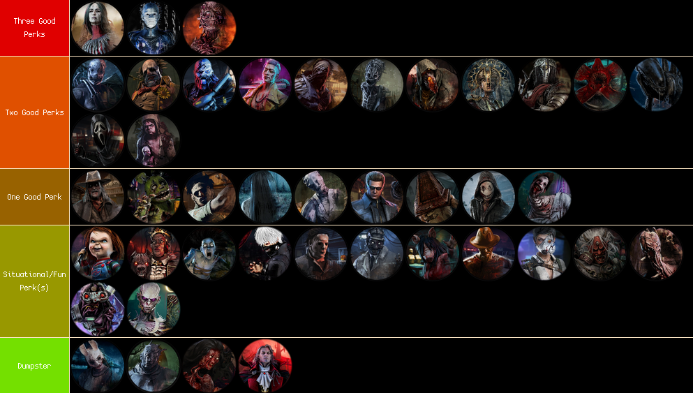 Here. Saved DBDs future. If youre wondering why Hillbilly and Blight are in Kept tier its because a) theyre way too popular and zoomer retards wont play balanced killers b) blight is thematically really cool and can be balanced to not be hitler oppressive tier without killing his identity its just bhvr is lazy and also incompetent.