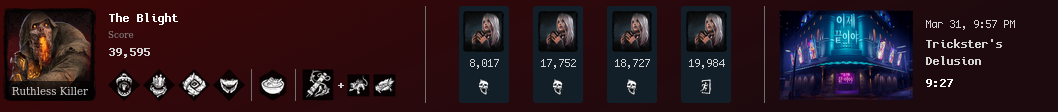 I respect Huntresses, Deathslingers, and Tricksters who do win streaks more than Blights. Ranged characters like them run at 110% speed. They also need to mind game with the red light then flick aim their crosshairs towards the survivor.