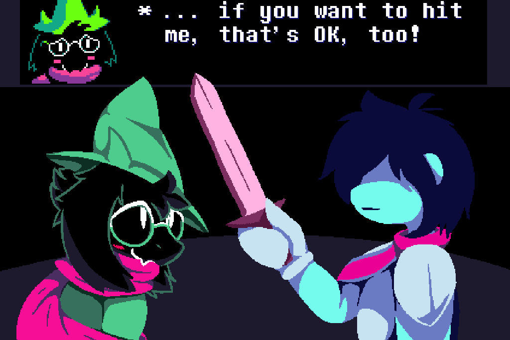 >>562090037I like to headcanon a version of Deltarune where the chapters have some downtime between them and Kris and Susie have more time to screw around Hometown and visit Ralsei at Castle Town. It may take away some urgency from the plot, but it's really nice to think about.