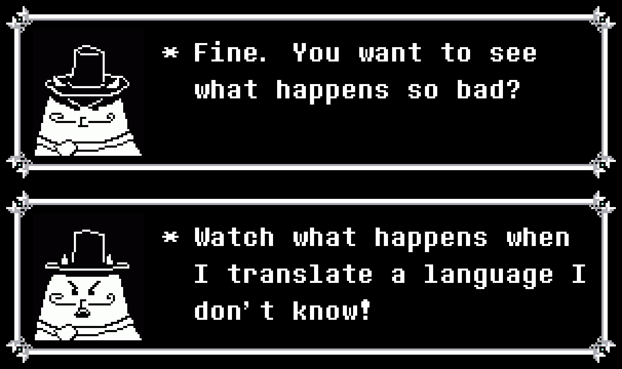 The worst part of all this is that now people think Toby actually WAS fluent in Japanese when Undertale was translated they are defending my goat wrong and it's making me GO CRAZY