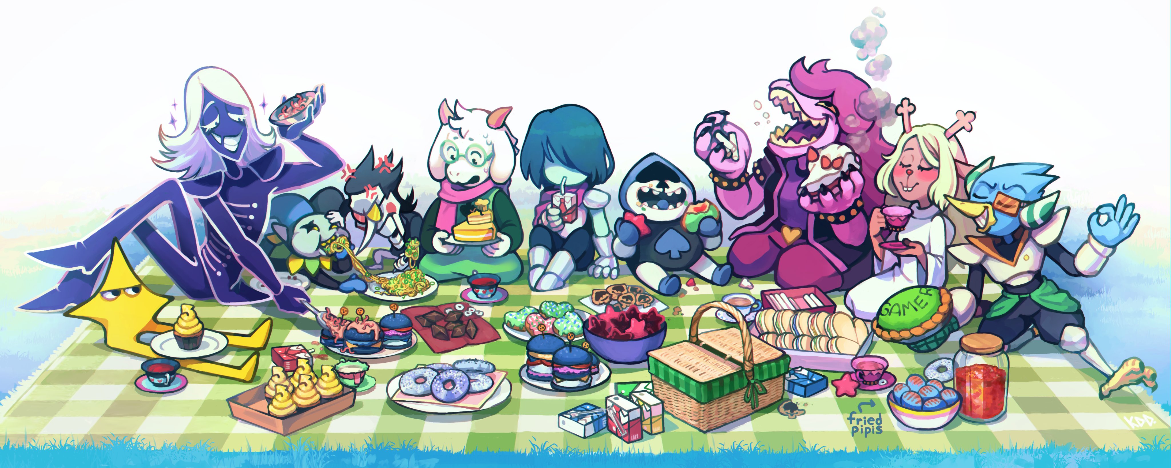 >>562087007>why is kris forcing ralsei to eat a realistic burgerRalsei having never tried his own cooking or probably any food in general spawned a bunch of fanart of him being offered food, sometimes romantically>why is it burntEither a mistranslation by the artist or that's how Ralsei perceives fried food, I guess>why is the red ketchup highlighted is it ketchupThat's foreshadowing for his inevitable cannibal arc