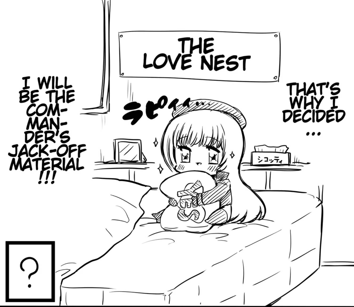 >You've been dating your favorite Nikke for a few months.>You're both ready to go all the way.>The fateful night comes around. You're both a little inebriated from your date earlier but otherwise ready to go.>She's on the bed in nothing but lingerie>You're standing beside her, she slips off your pants and underwear.>The moment she sees your penis, she breaks out into hysterical laughter.>"I'm sorry @username, I didn't mean to laugh, it's just-">Can't hold it in, she starts laughing even harder.What would you do?Honestly I'd probably just kill myself