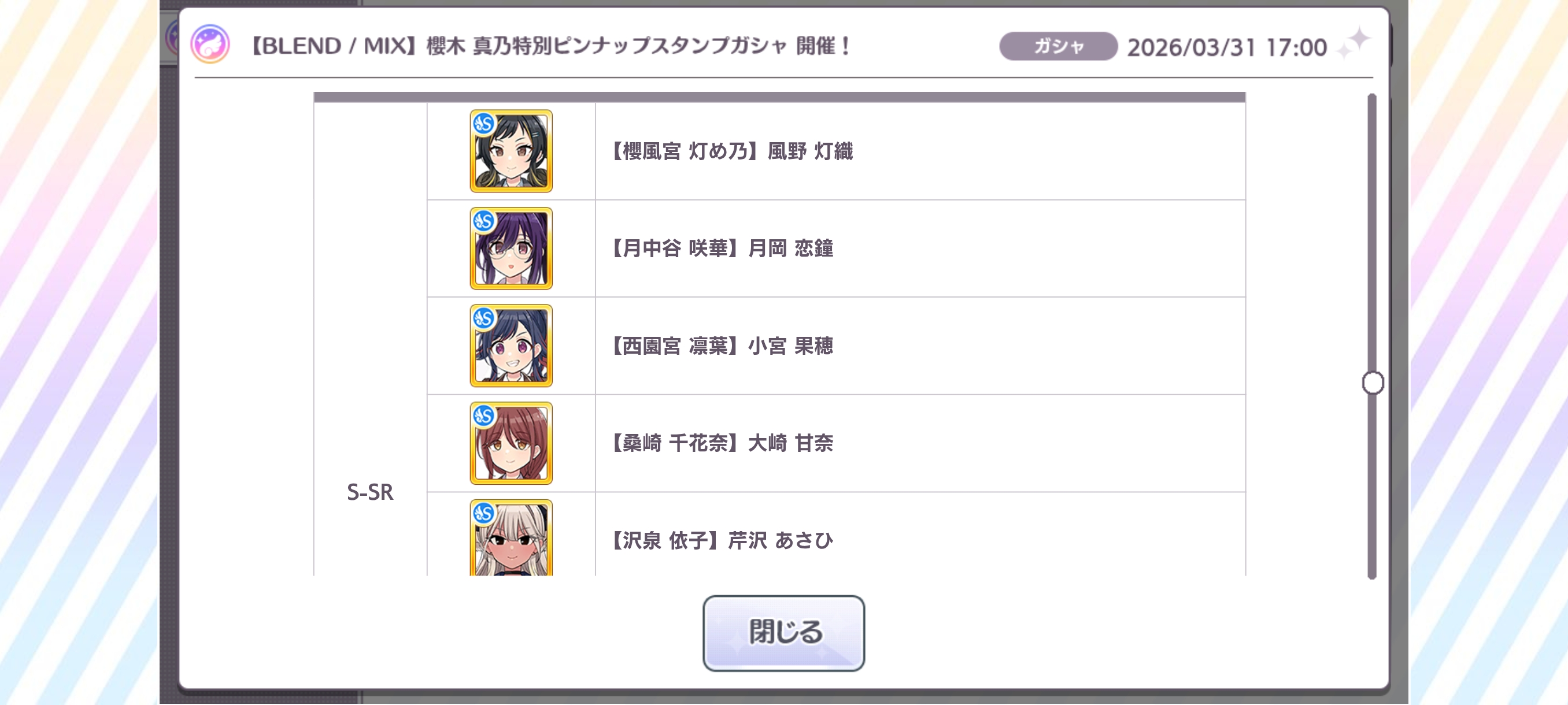 iM@S NEWS ARCHIVE- Archive of >>561989582: archive.is/Aa4cz>Shiny Colors- SFP PJ: REFRAC7IONS Higanryuu Gacha Update (Mar 31st): >>562049336 >>562041794 >>562052804- SFP PJ: REFRAC7IONS Higanryuu "あみあわい" Event Update featuring "sanka": >>562049336- SFP Casual outfits in MVs and Dress Order: >>561857000 >>562050430- SFP Photo Studio anti-aliasing: >>562053225- SC MYSTERY IDOLS on Apr 1st: >>562040649- CoherentLight chapter 24 (part 1): >>562049291- Jimuteki Shinography chapter 12 TS: >>562051235>Gakuen- GK Sense/Anomaly Legend Cards (Mar 31st): >>562037365- GK REVERSI's "Tokimeki Emotion" Unit Gacha on Apr 1st: >>562038445 >>560730539 >>560730642- GK Upcoming Support Card on Apr 1st: >>562036804- GK "The Daily Life of the First-Year Student Council Members" Event on Apr 1st: >>562037503 >>562036509 >>562055439- GK Leaks (Mar 31st): >>562037963 >>562055638- Nuitaker: >>561875279>Million Live- ML Shizuka's VA leaves her agency: >>562050093- Nannan!! 2.0: >>562019868>Cinderella Girls- Please love Aiko: >>562051134>Other- Imagine having your own personal Yellow Cheerleader squad: >>562019934 >>562026718