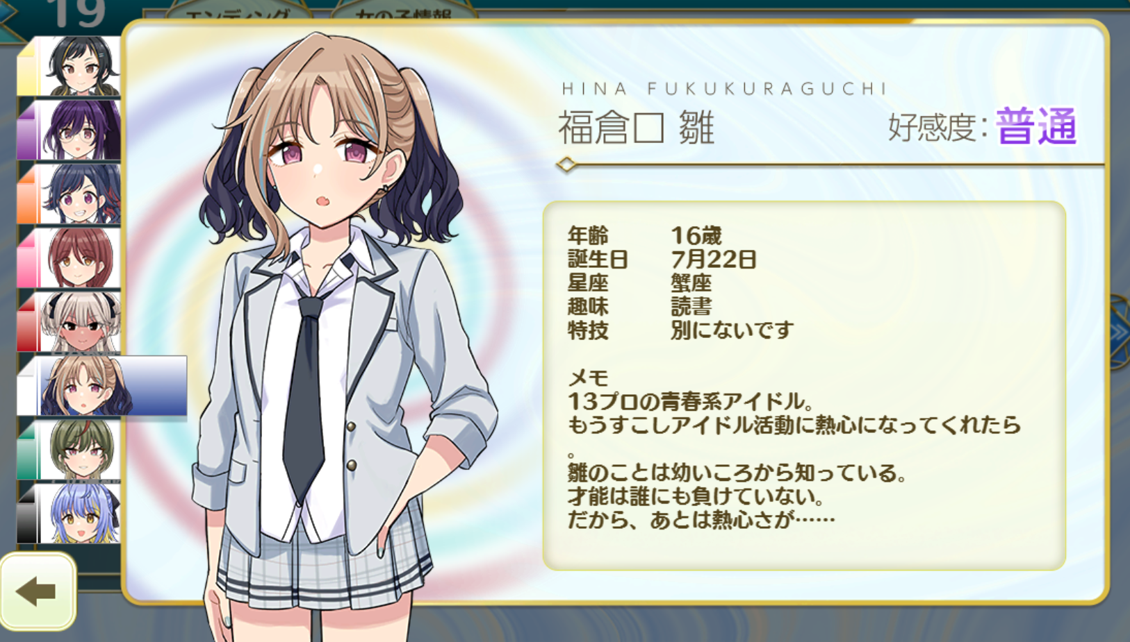Why can't I have Asari on my home screen anyways?You can pick Hazuki on SFP can't you? Or she's on one of the screens iirc.