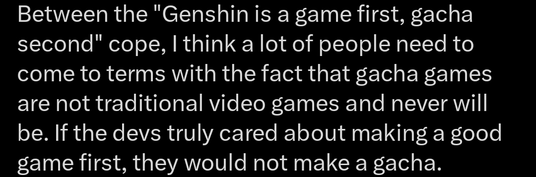 >>562092252It sorta applies. Limbus dodges the biggest issue with gacha games though, which is characters. Generally gacha are a revolving door of characters who show up for one story arc or patch to be shilled for their gacha, then fuck off to never been seen or developed again. This leads to very shallow characters. Limbus dodges this by having a set cast and just gacha-ing for versions of them