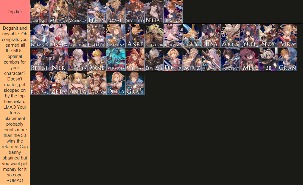 >Gawdlike character guides (secret techniques!) for Yuel, Vikala, Narmaya, Galleon, Wilnas, Ilsa, by yours truly Anon!