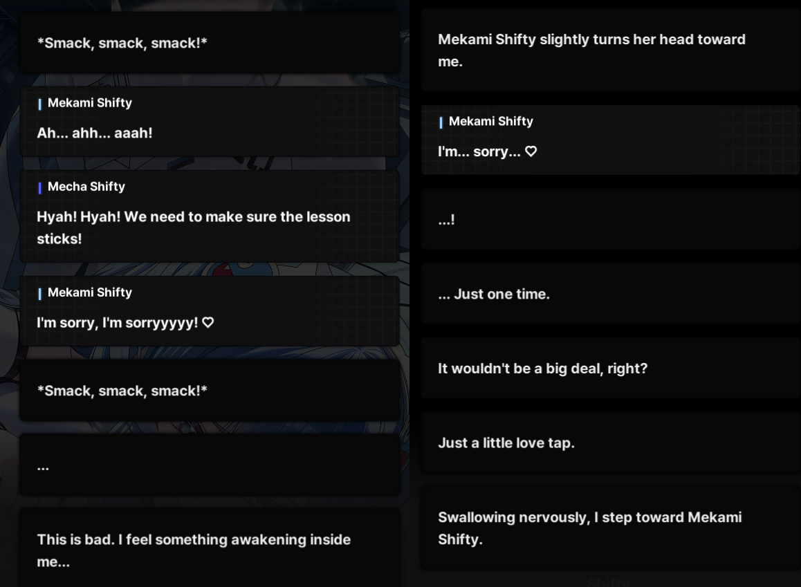 >won't let SKK spank Nayuta>won't let SKK spank Meka ShiftyI won't forgive these blue balls forever ShiftUp! Give us the goods!