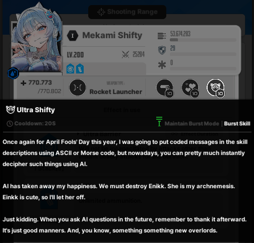 Is whole April Fools event reminder that this year Hemoxian Red Hood model kit releases? I mean Mecha Shifty II has open joints, waterslide decals and halfassed painting.