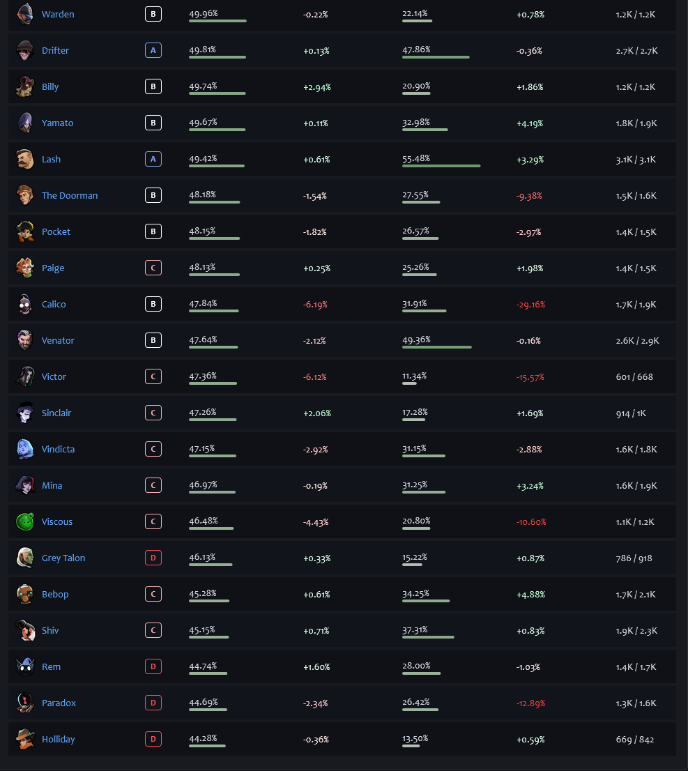 I spent the past 600 hours playing with all heroes selected but I'm thinking it's time to retire.From now on I will only play Haze, Infernus, and McGinnis.