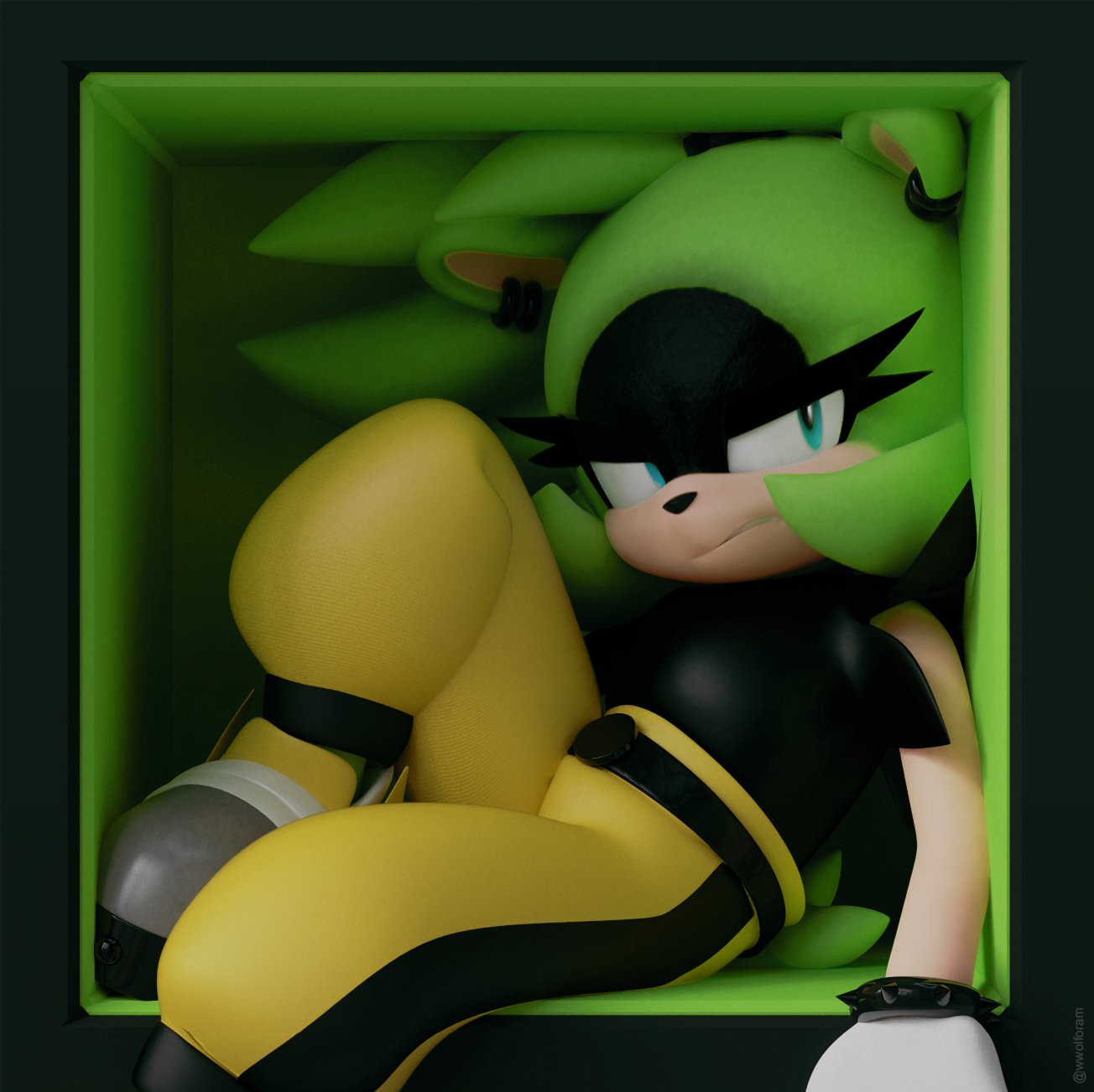 and unlike sally blaze is likely wearing a body suit.