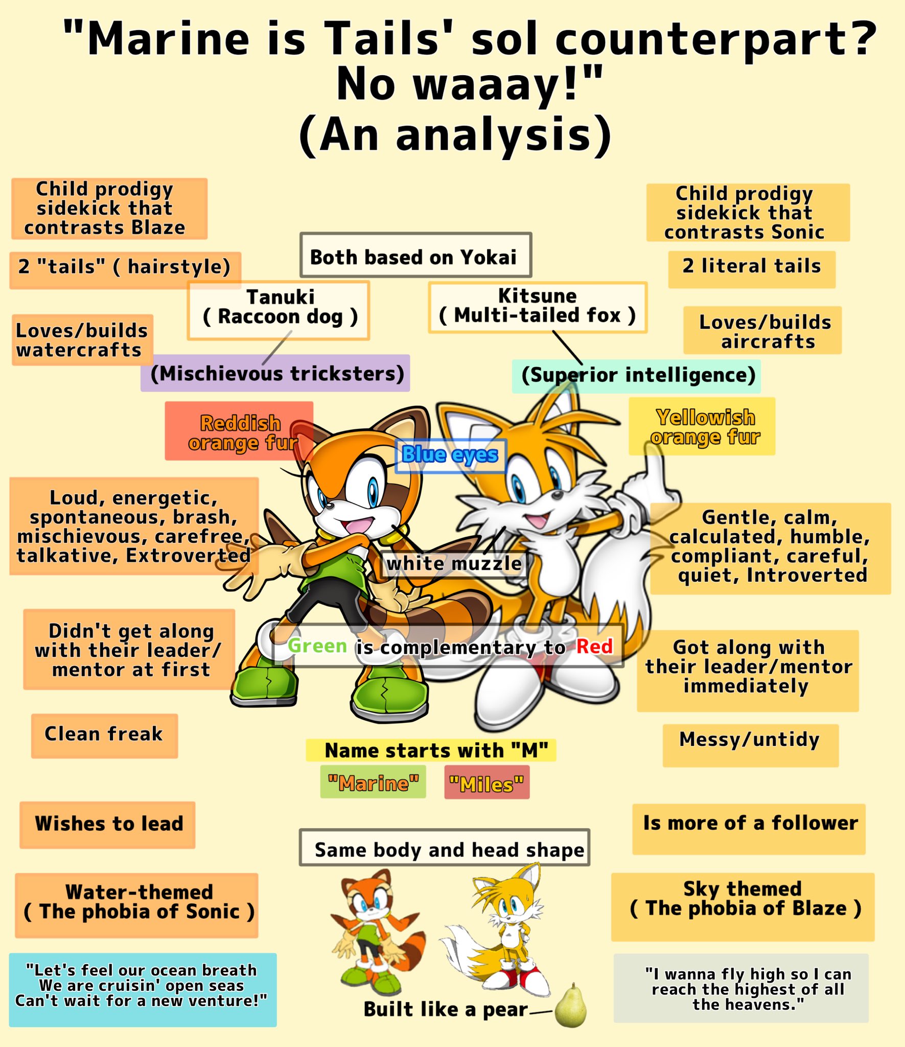 they are Sonic team has never leaked and notes or documents on their character design philosophy, and what little we do have does nothing to help your case just look at Blaze's beta design