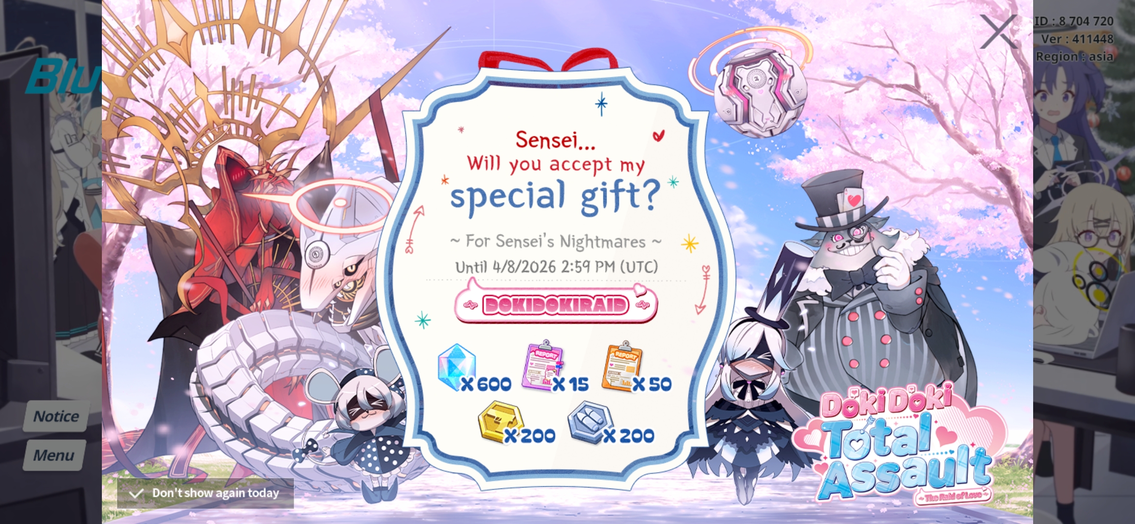 Previous Thread: >>562095747>Guides, Resources and useful links:https://rentry.org/bagguides>/bag/Circles/Clubs/Friends:https://rentry.org/holdingthebag>4koma, Manga, Side Content, PVs & Shortshttps://rentry.org/bacontent>>(JP) – JST>Banners:>4/1 After Maint – 4/15 10:59Akane (School)Seia (Limited)Asuna (School – Limited)Karin (School – Welfare)Toki (Bunny)>News:Patch notes: https://bluearchive.jp/news/newsJump/645>Events:Code: BOX - The Shadow Approaching Millennium – 4/1 After Maint – 4/15 10:59Balancing Schale's Books with the General Student Council – 4/15 11:00 – 4/21 10:59>Content:Joint Firing Drill (Breakthrough) – 4/1 After Maint – 4/8 3:59Grand Assault: Perorodzilla (Field – Torment w/Heavy & Special Armor) – 4/8 11:00 – 4/15 3:59Limit Break Assault: Tiphareth (Indoor – w/Elastic Armor) – 3/19 11:00 – 4/21 3:592x Lesson/Scrimmage – 4/1 4:00 – 4/8 3:592x Hard – 4/8/ 4:00 – 4/15 3:592x Commissions/Bounty – 4/15 4:00 – 4/21 3:59>>(GLOBAL) – UTC>Banners:>3/31 2:00 – 4/7 1:59SubaruUi (Swimsuit – Limited)Hinata (Swimsuit – Limited)ReisaMine>News:Patch notes: https://forum.nexon.com/bluearchive-en/board_view?thread=3403455>Events:My Office: https://bluearchive.nexon.com/user/myoffice>Content:Grand Assault: Hieronymus (Urban – Torment w/Special & Light Armor) – 3/31 2:00 – 4/6 18:59Limit Break Assault: Tiphareth (Indoor – w/Elastic Armor) – 3/11 2:00 – 4/6 18:592x Normal – 3/30 19:00 – 4/3 18:592x Hard – 4/3 19:00 – 4/6 18:592x Bounty – 4/6 19:00 – 4/13 18:592x Account EXP – 4/10 19:00 – 4/12 18:592x Normal/Hard – 4/13 19:00 – 4/20 18:592x Account EXP – 4/17 19:00 – 4/19 18:592x Lesson/Scrimmage – 4/20 19:00 – 4/27 18:592x Bounty – 4/27 19:00 – 5/4 18:59
