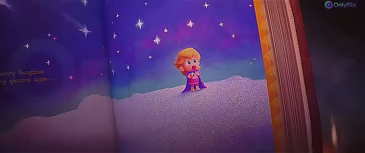 The scene of Mario & Peach running through the obstacle is apparently Bowser Jr. basically making a Mario Maker level in real time