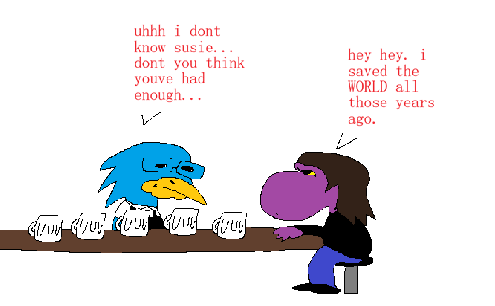 Why do I have a yes-man bootlicker? That's more cringe than a nemesis. I'm not even that good at drawing mecha. Can you pretend to be my nemesis?