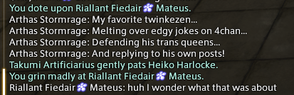 >mfw I just became part of a conspiracy theoryI just picked juniper because its what I used in blue protocol and verkko because reading on viera names it seemed like it fit their lore and stuff I just went on gary gygax's book of names and picked a surname that looked decent...
