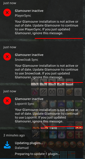 >>562161810Either Glamourer or Penumbra need an update, start without custom repos, update them, then retart.