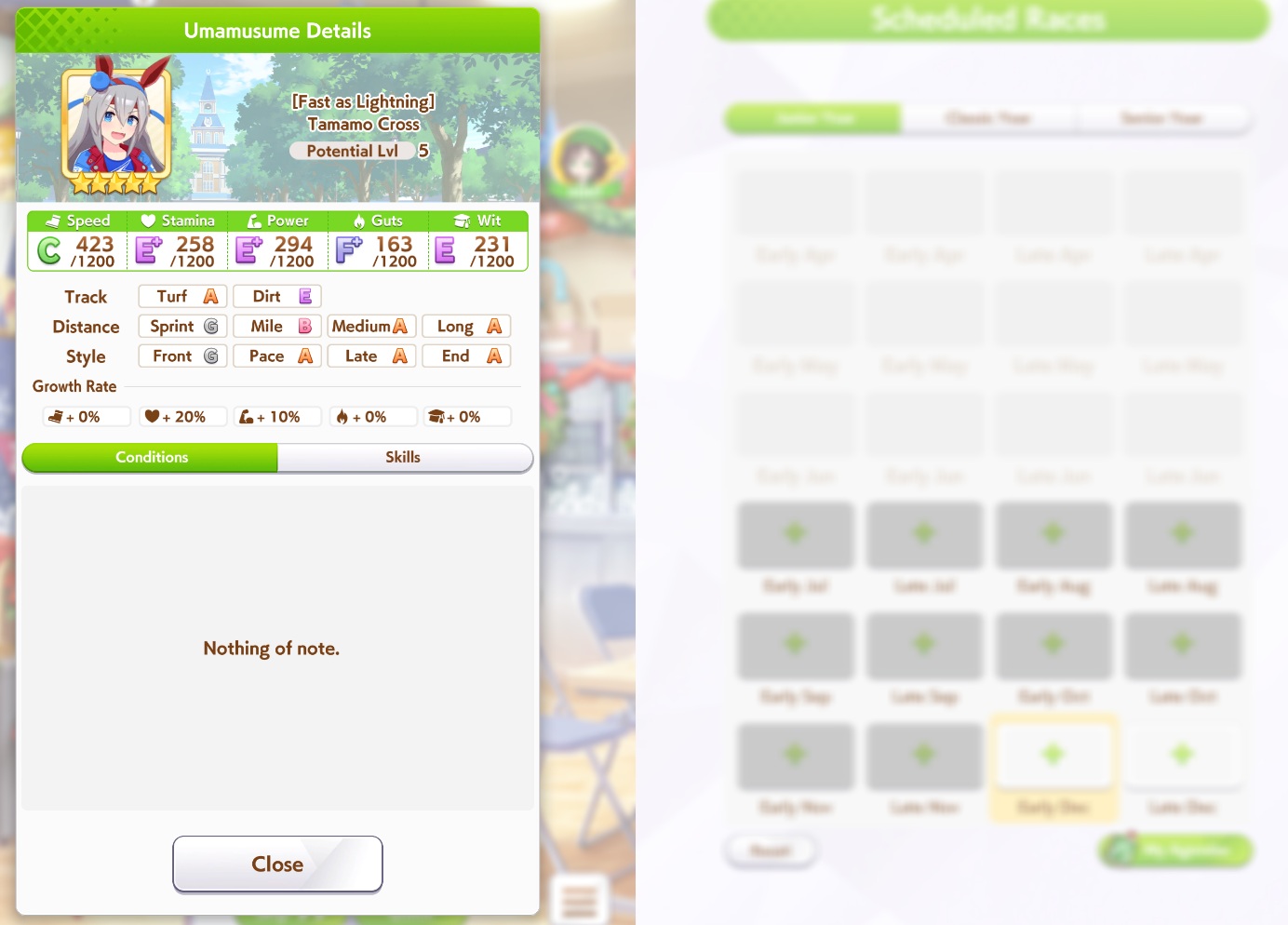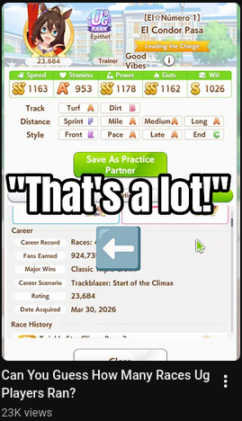 >>562174239for now try deck with 60 racebonus, then you should still race more, aim for around 30-35 wins and compare the differences.you would get more coins to spend on item, more skills point (very important), random stats gain is fairly ok too