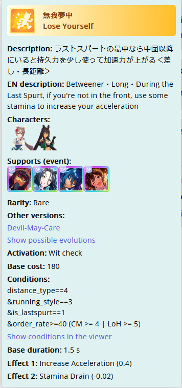 >>562172270it's not a coincidence that whenever spurt is relevant, ends dominateno other style has an accel that always fires at the start of late race regardless of positionlates and paces only have accels that proc at a random time, and paces still don't have the gold versionthe only front accel only works if they're first AND on the final corner, and it's still random where on that cornerthe only way this is fixed is with time