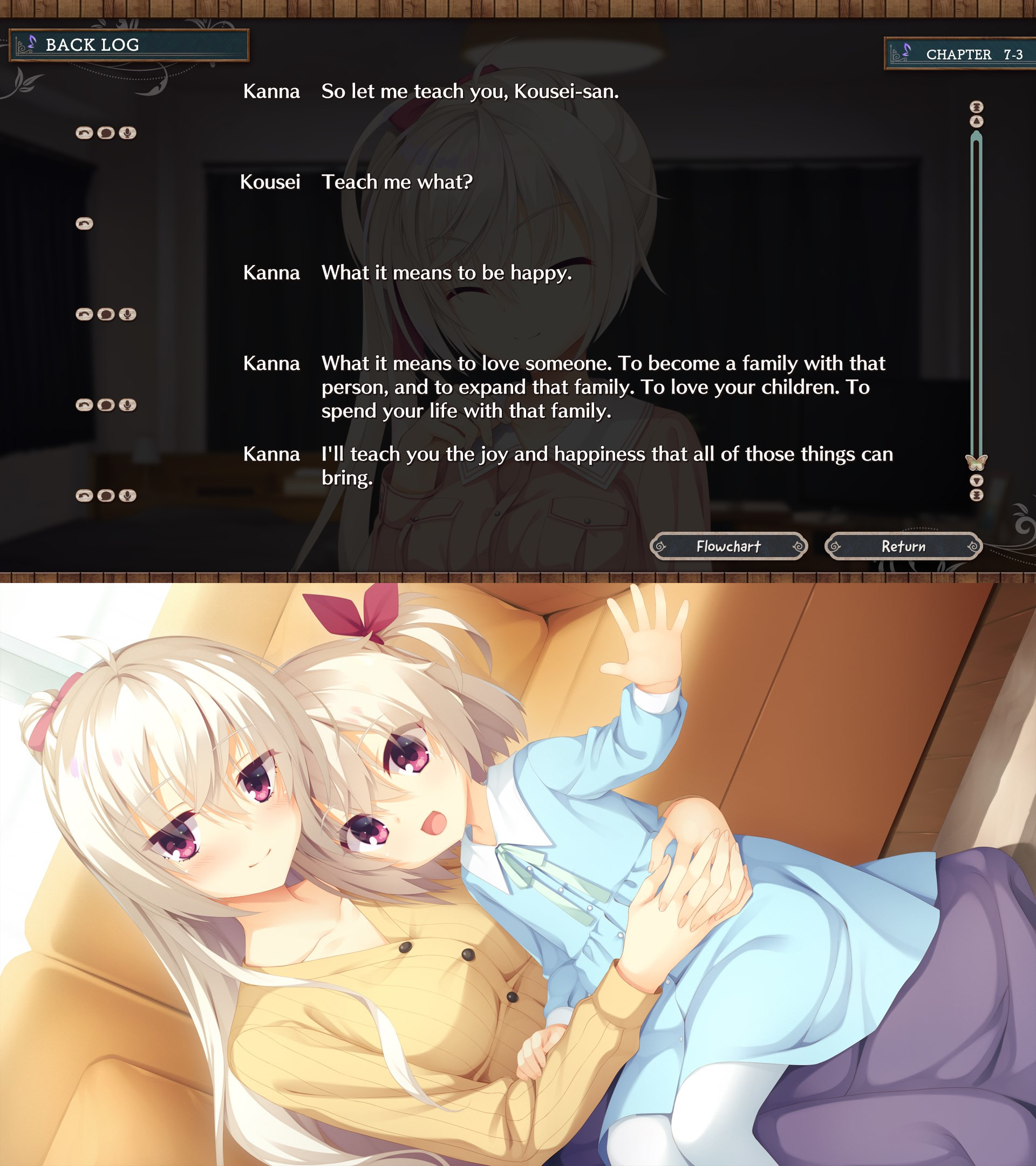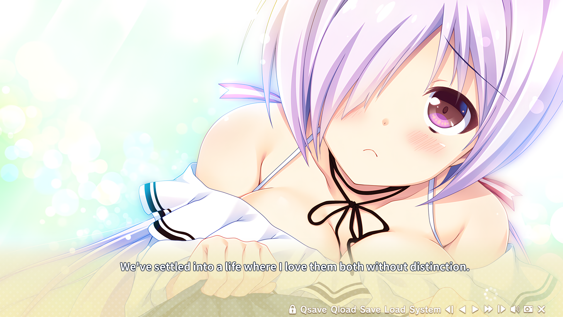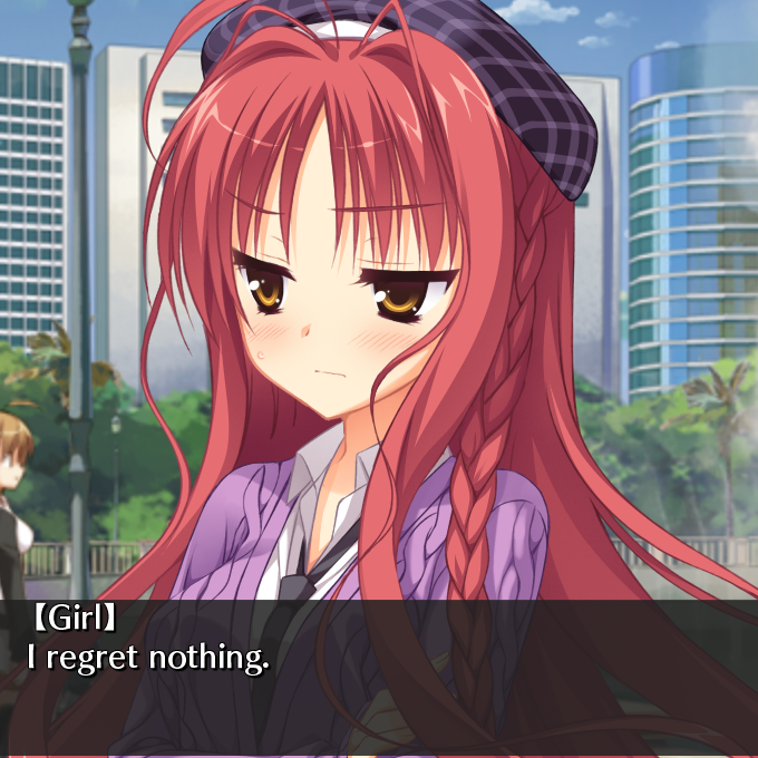 Sarasa route completed!Damn, I love fictional girls who are terminally ill and stuck in hospital beds. It’s when the protagonists turn into full on knights and start reflecting on a lot of things, becoming incredibly sweet, attentive, affectionate, and pushing themselves to the limit both physically and psychologically for the heroine. In this case, the MC sees her as a fairy tale princess and even tells her that. Now I'm going to read the fandisc. I hope it's not just cheap sex fanservice...