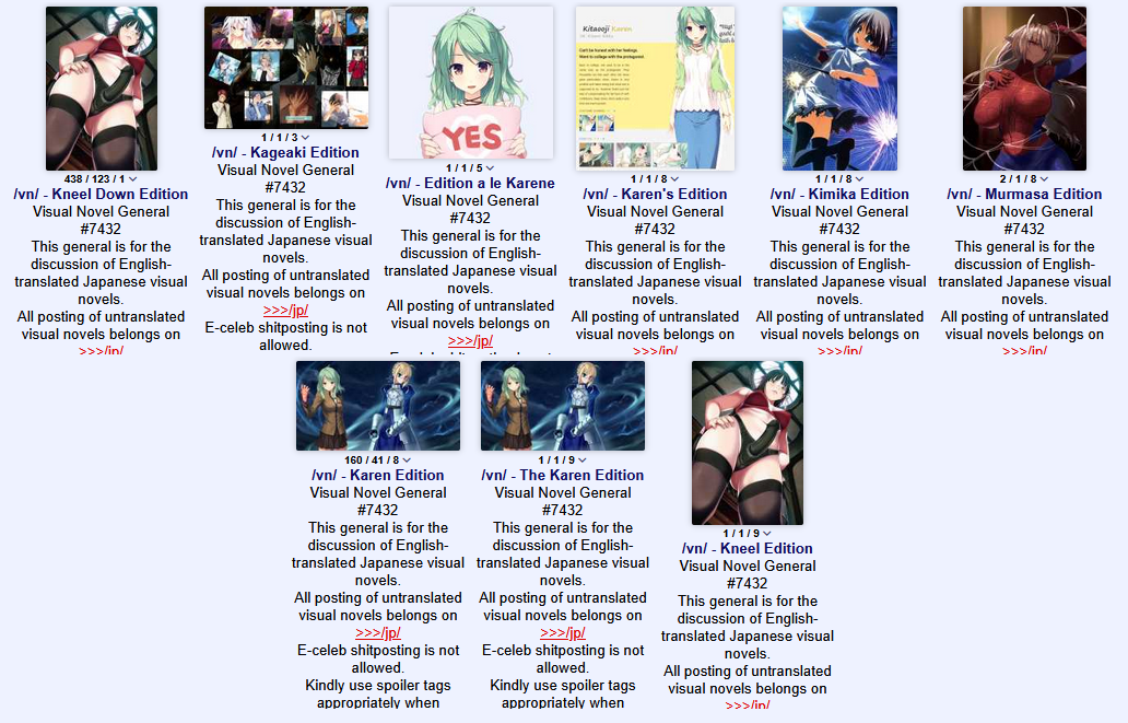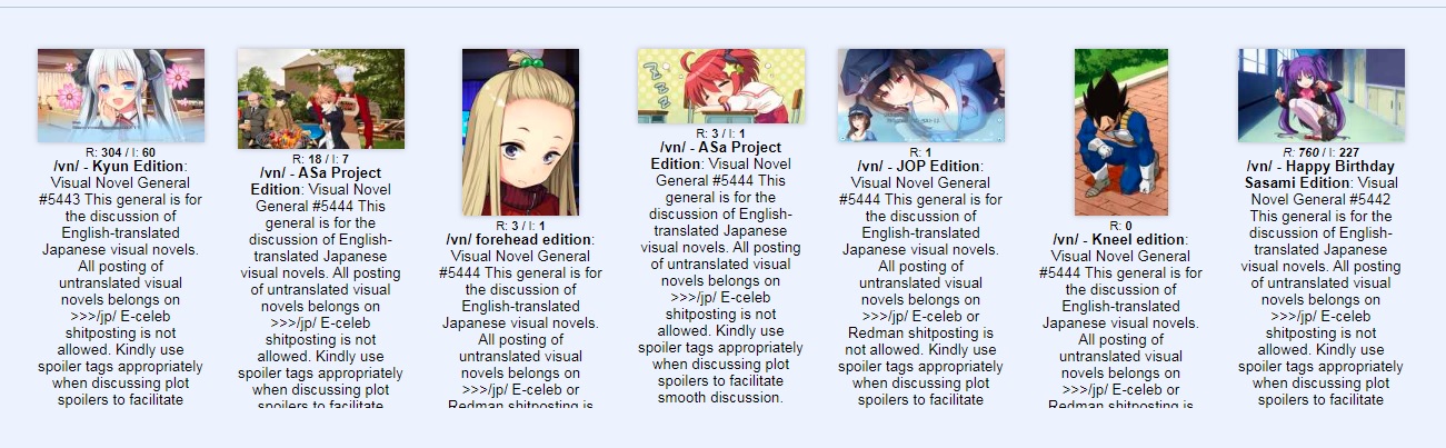 Visual Novel General #7511This general is for the discussion of English-translated Japanese visual novels.All posting of untranslated visual novels belongs on >>>/jp/E-celeb shitposting is not allowed.Kindly use spoiler tags appropriately when discussing plot spoilers to facilitate smooth discussion.>Having trouble with your VN? Try the following before you ask for tech support:1. Be in Japanese locale2. Read the Readme3. Check https://rentry.org/4chan-vn-help4. Copy error messages with CTRL+C and paste them with CTRL+V into DeepL5. Google it>FAQs, Recommendations, and Other Useful Things:https://chartanon.github.io/moechart/https://files.catbox.moe/j3dd0n.pnghttps://github.com/marisukukise/japReader>Need a novel with a specific element?https://vndb.org/g>Download Links:https://rentry.org/4chan-vn-linksPrevious thread: >>562103323