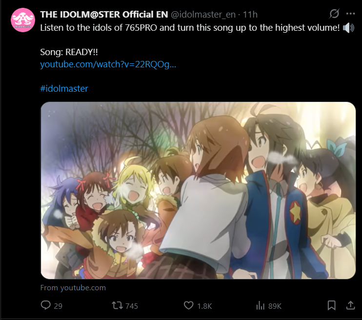 iDOLM@STER ThreadPrevious iM@S Thread: >>562139196Official website: idolmaster-official.jpJapanese news: imasnews765.comEnglish wiki: project-imas.wikiAPKs: apk.ksmz.moeOld archive of materials: sites.google.com/view/yukipobackupOld FAQ + Resource Links: pastebin.com/icRtaLvvMaterial translations + Music downloads: pastebin.com/DebHdukECharacter birthdays: pastebin.com/cLdezeDuNext thread OP: pastebin.com/A5UGxTuBHelpful Links: pastebin.com/Z70CGAsN>Event/Gacha Dates (Mar 31st): >>562066918 >>562066965- Previous News: >>562139218WEDNESDAY:Apr 1st, 12AM JST: Gakuen Ume's Birthday Mini-Live 2026: youtu.be/r4wylrjOuq8 >>561943252Apr 1st, 8PM JST: iM@S April Fools 2026 with AP Kassy: youtu.be/E1WjfTZPtNk >>561952503 >>561952447Apr 1st, 9:30PM JST: VL Cosmo Free Talk stream featuring "Gyaru-zuru Cosmi": youtu.be/sMj1UeRhJ70Apr 1st, 10PM JST: Gakuen REVERSI's "Tokimeki Emotion" lyric MV: youtu.be/QulHtowM_6o >>560731532 >>562068757 >>562071795Apr 1st to July 31st: Shiny Colors ALSTROEMERIA x GOTOKEN Hakodate: >>561333017 >>561652880Apr 1st: MILLION ANIMATION THE@TER "Tobenai Boku wa Oyoida" CD: >>554026917Apr 1st: Song for Prism SUPER DUPER DREAMER / BEAST MODE CD: >>558531819Apr 1st: SideM TRANSCENDENT T@LES 07 CDTHURSDAY:Apr 2nd, 12AM JST: Gakuen Saki's Birthday Mini-Live 2026: youtu.be/26dpDbWQmLY >>561943189Apr 2nd, 10PM JST: Gakuen Saki's "EGO" lyric MV: >>559080851Apr 2nd: Gakuen FigUnity Saki/Temari/Kotone preorders: >>561442329 >>561457194 >>562154724Apr 2nd to Apr 15th: Gakuen x animate cafe rerun: >>559279356