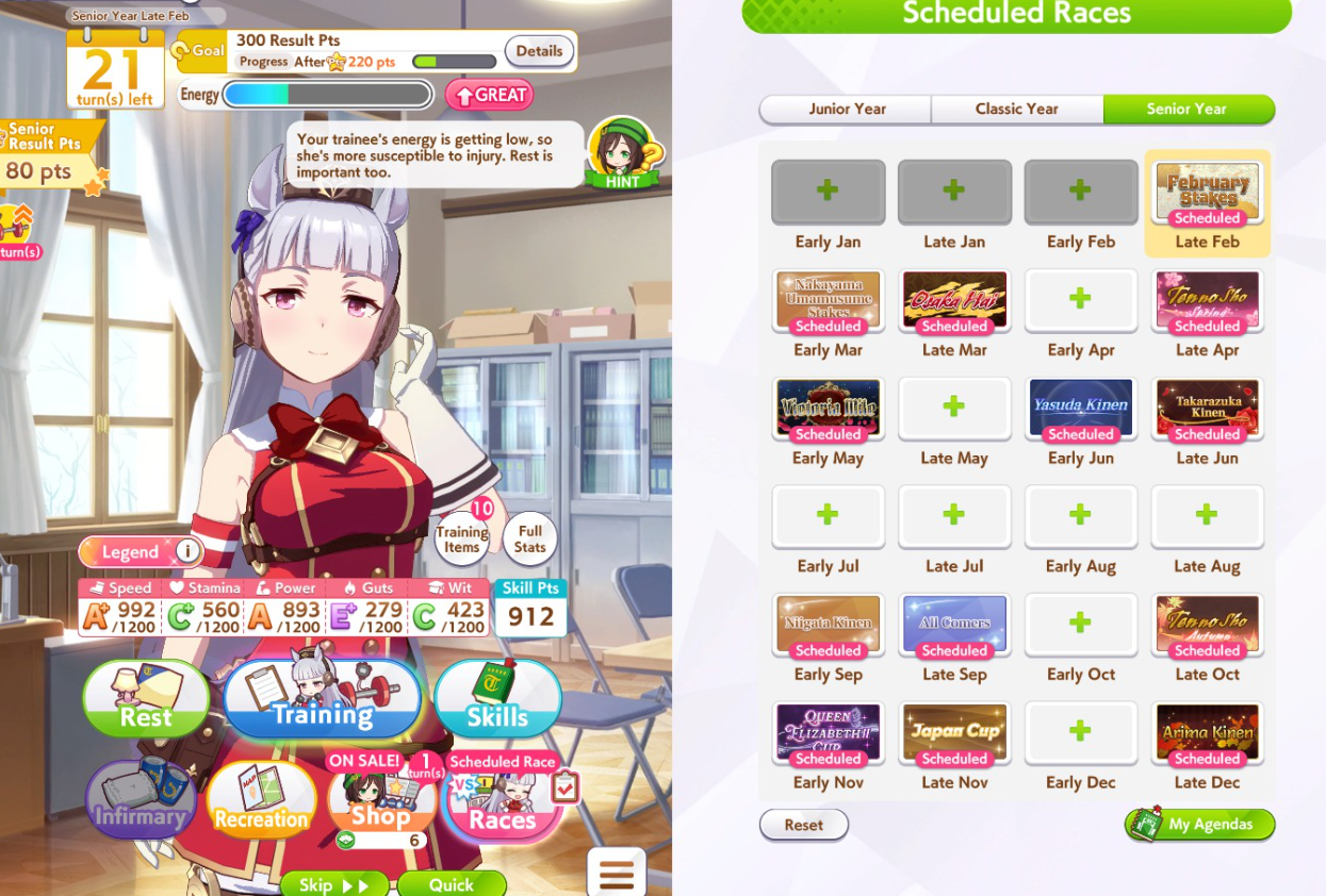 Asking once again:I don't get full race schedulesHow are you suppose to build friendship gauges if you're racing all the time and you don't have energy for free turns>bwo your shopThe shop doesn't give energy fill 100% of the timeWhat are you suppose to do