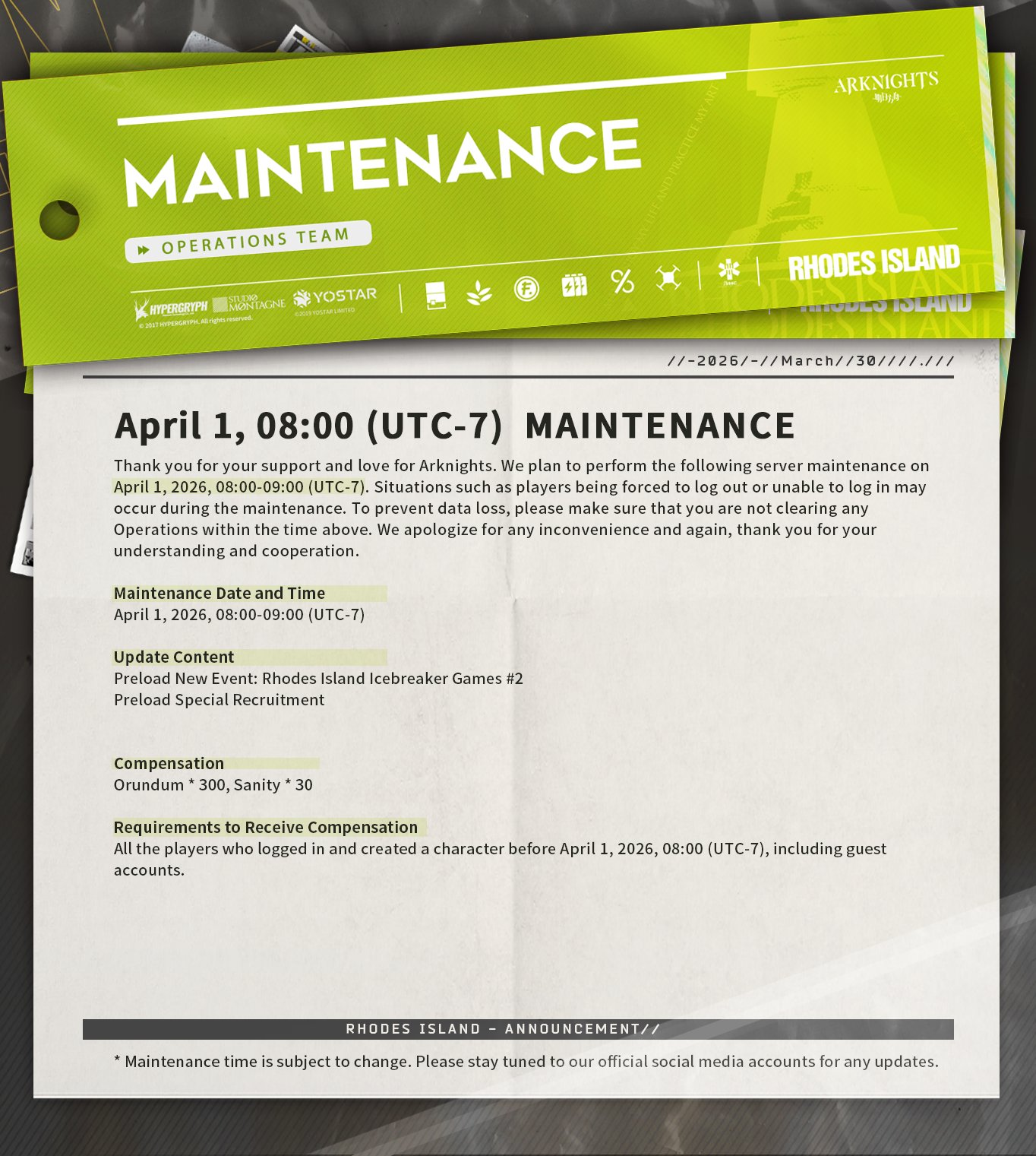 Previous thread: >>562149527>CURRENT, FUTURE GLOBAL/JP/KR CONTENT:[3/27-4/10][Standard]6* Sniper Pozemka, 6* Defender Jessica the Liberated (Shop), 5* Sniper Melanite, 5* Medic Record Keeper, 5* Supporter Quercus (Shop)[3/19-4/2]EP16: Abnormal Spectrum - Windscoot skin[3/19-4/2][The Silent Wavelengths]6* Caster Mantra, 5* Vanguard Poncirus, 5* Defender Vetochki, 4* Vanguard Snegurochka[3/18-4/2][Storyboard Breaker]Narantuya, Mitm, Greyy The Lightningbearer, Haze[4/1-4/22]Icebreaker#2 - Chiave skin[4/1-4/15][Joint Operation]6* Sniper Narantuya, 6* Guard Degenbrecher, 6* Sniper Lemuen, 6* Caster Ho'olheyak, 5* Vanguard Mitm, 5* Specialist Wulfenite, 5* Supporter Grain Buds, 5* Sniper Lunacub, 5* Caster Santalla, 5* Sniper Greyy the Lightningbearer>CURRENT, FUTURE CN CONTENT:[3/26-4/9][Standard]6* Supporter Stainless, 6* Sniper Ray (Shop), 5* Sniper Kichisei, 5* Defender Bassline, 5* Caster Santalla (Shop)[3/27-4/10]When Elegies Are Ashes - Brigid skin[3/27-4/10][Returned From A Pyre]6* Caster Necrass, 5* Specialist Wulfenite, 5* Defender Firewhistle[TBA][Ambiance Synesthesia]Lemuen, Necrass, Saria>/akg/ website:akgcc.github.io>AK EN Database:puppiizsunniiz.github.io/AN-EN-Tags/akhrchars.html>More valuable resources:rentry.org/akg_resources>/akg/ merch guiderentry.co/akg_merch