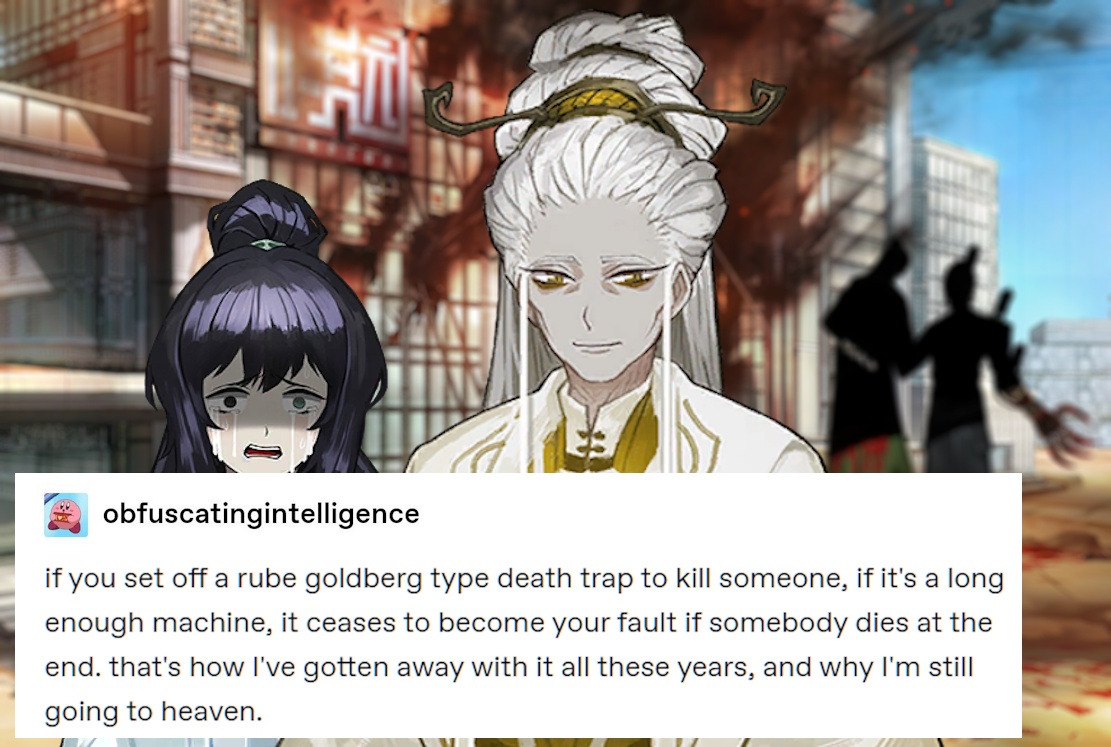I hope Meursault's Canto has a flashback scene showing him as a baby and the first words coming out of his mouth carry his normal adult voice. Between him and Don getting exposed, I don't know which limbab was funnier in this event.